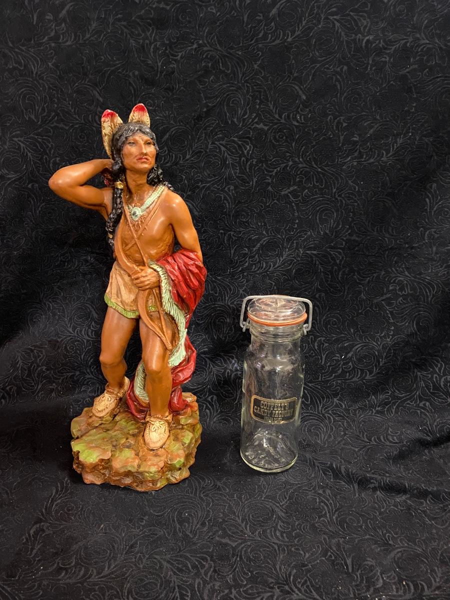 VINTAGE JAR AND NATIVE AMERICAN STATUE