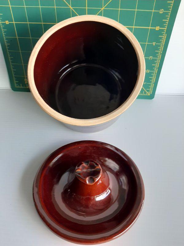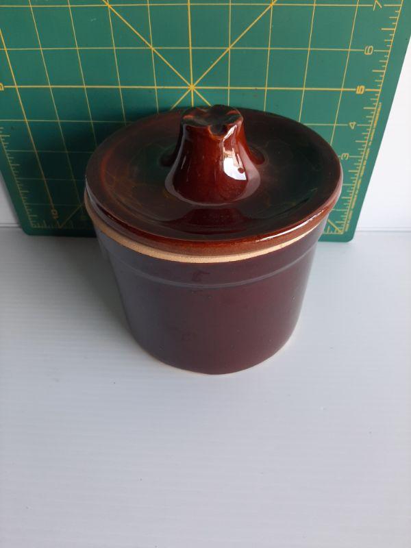 Brown jar w/lid missing wire