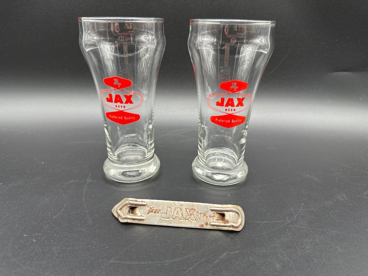 Vintage JAX Beer Pilsner Glasses (Pair) + JAX Metal Bottle Opener – New Orleans Brewery