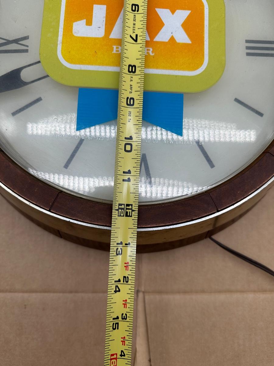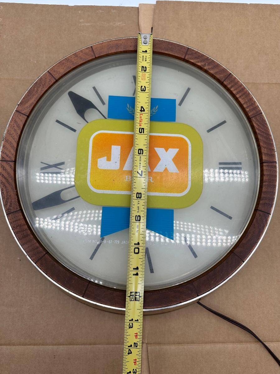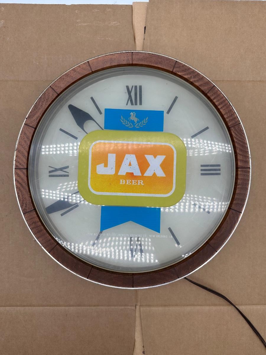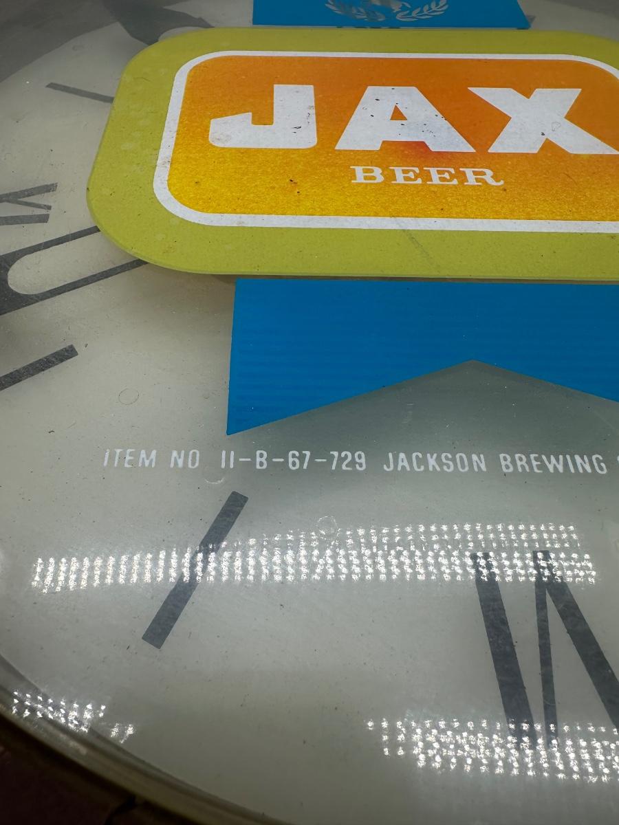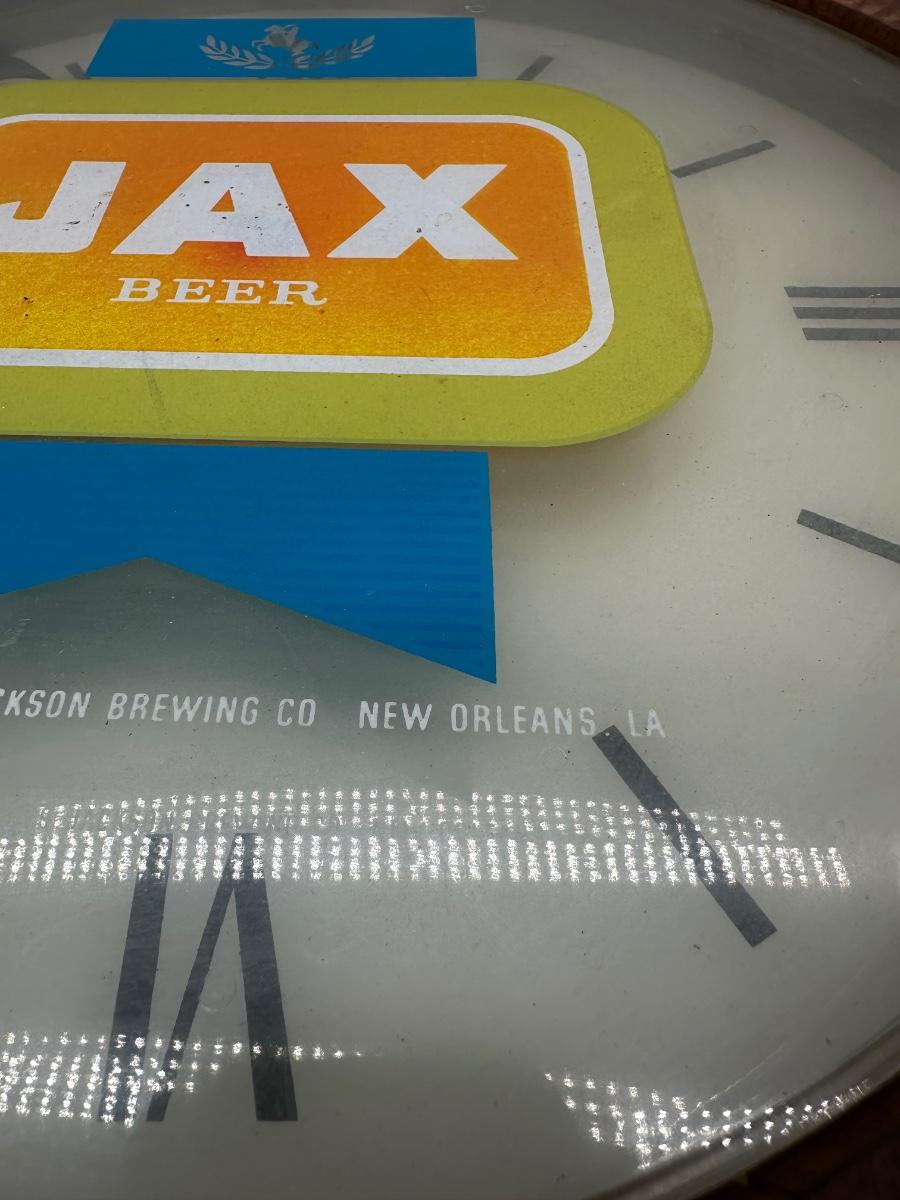 Original vintage Jax Beer wall clock produced for Jackson Brewing Company, New Orleans, Louisiana.