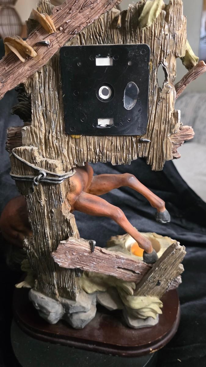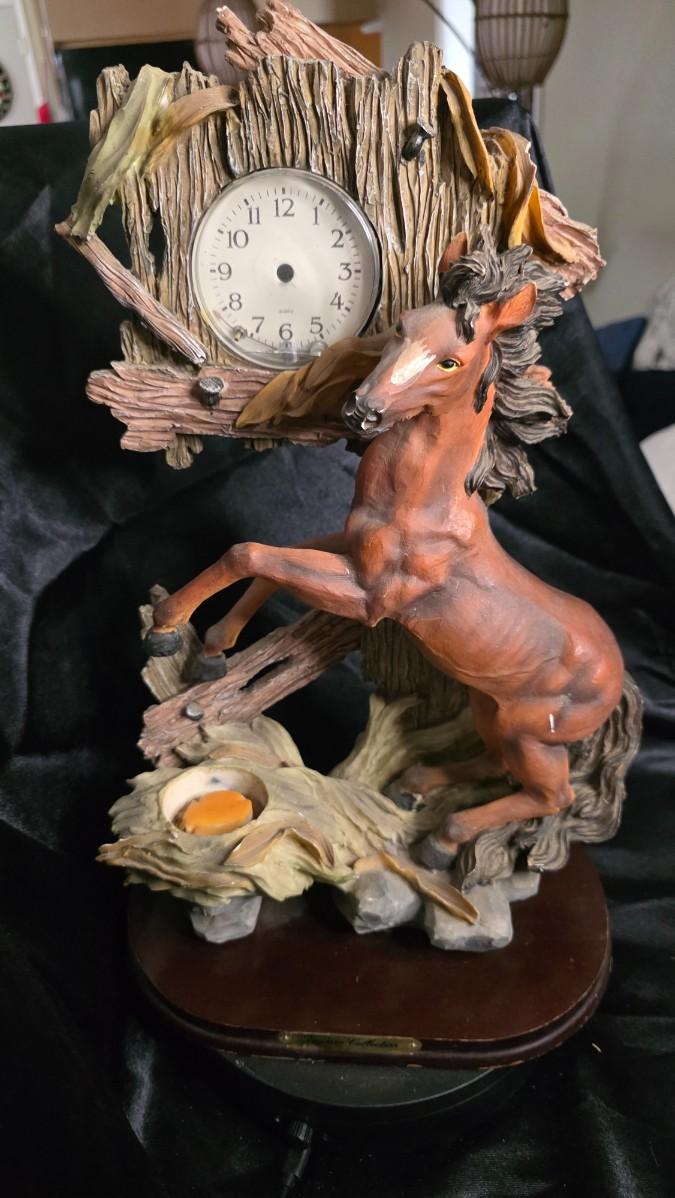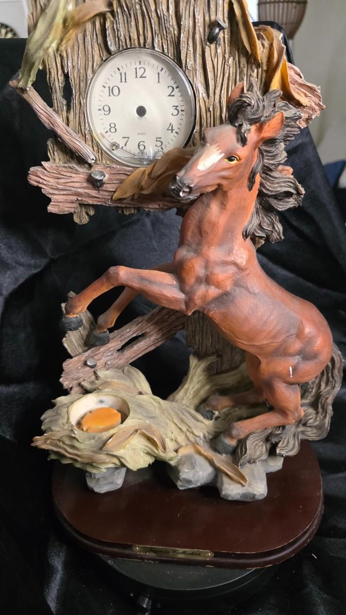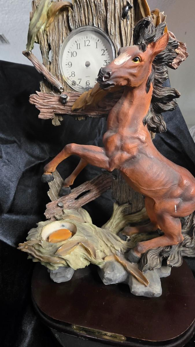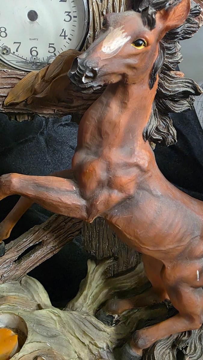 Vintage Jaymee Collection Horse Clock – Hand-Painted Equestrian Sculpture with Rustic Tree Design (Repairable Clock Hands)