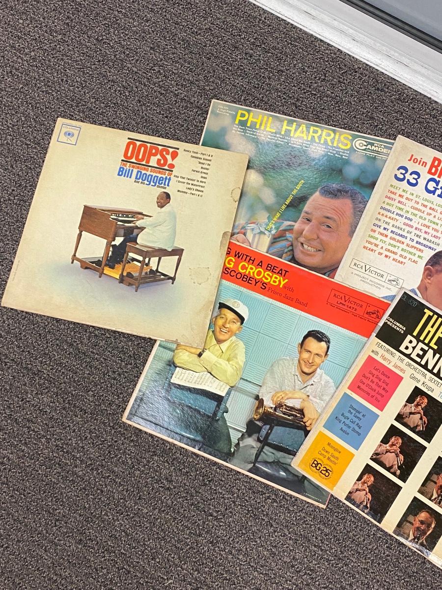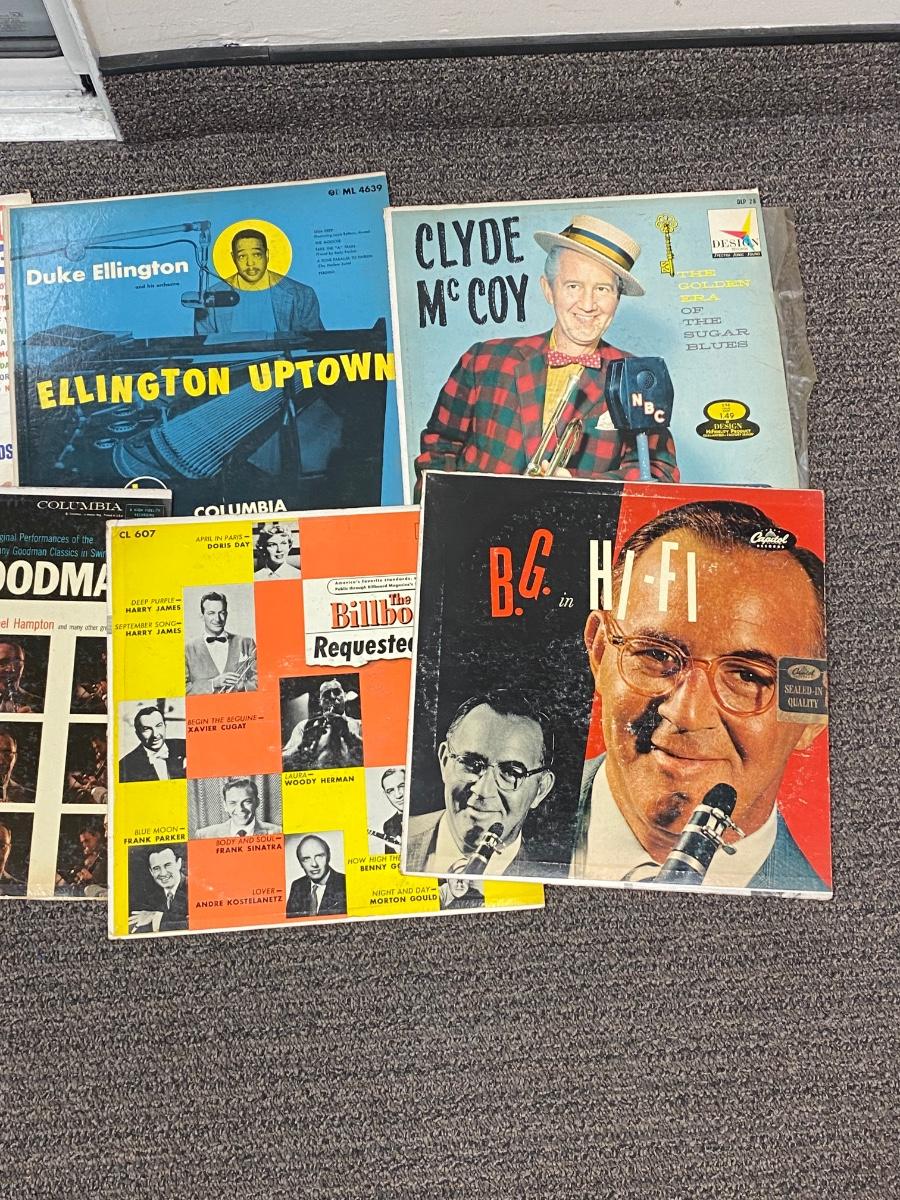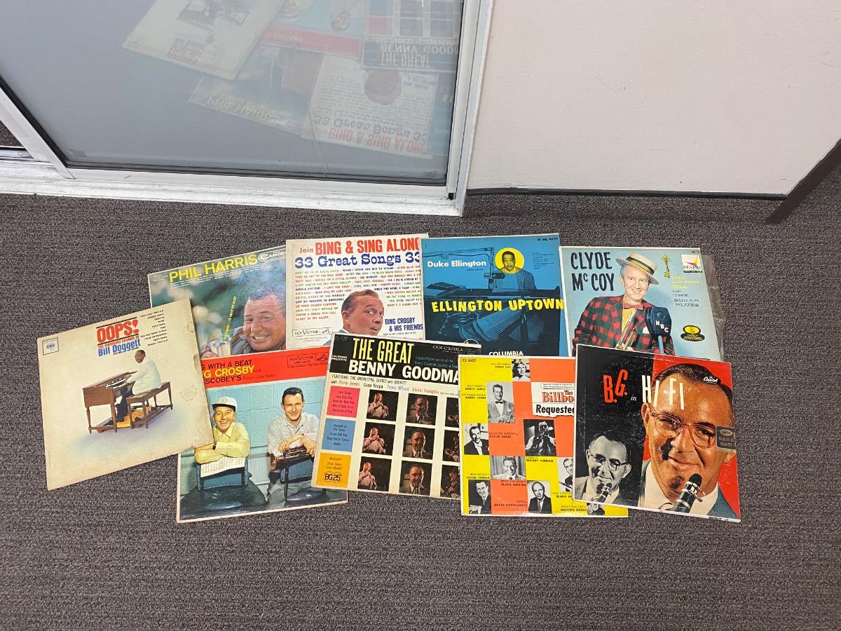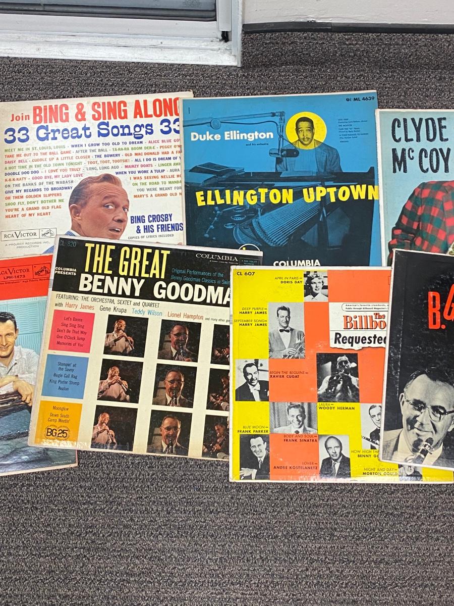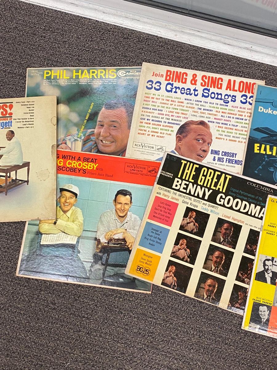 Vintage jazzy brass band albums. Bing Crosby, Benny Goodman, Clyde McCoy and more. Untested.