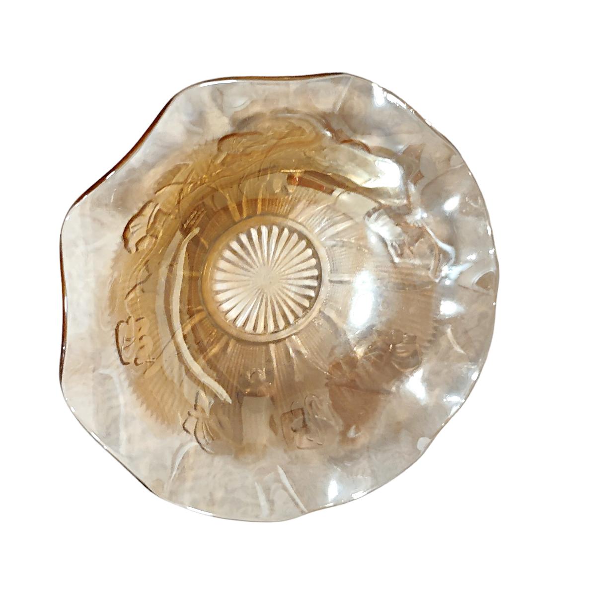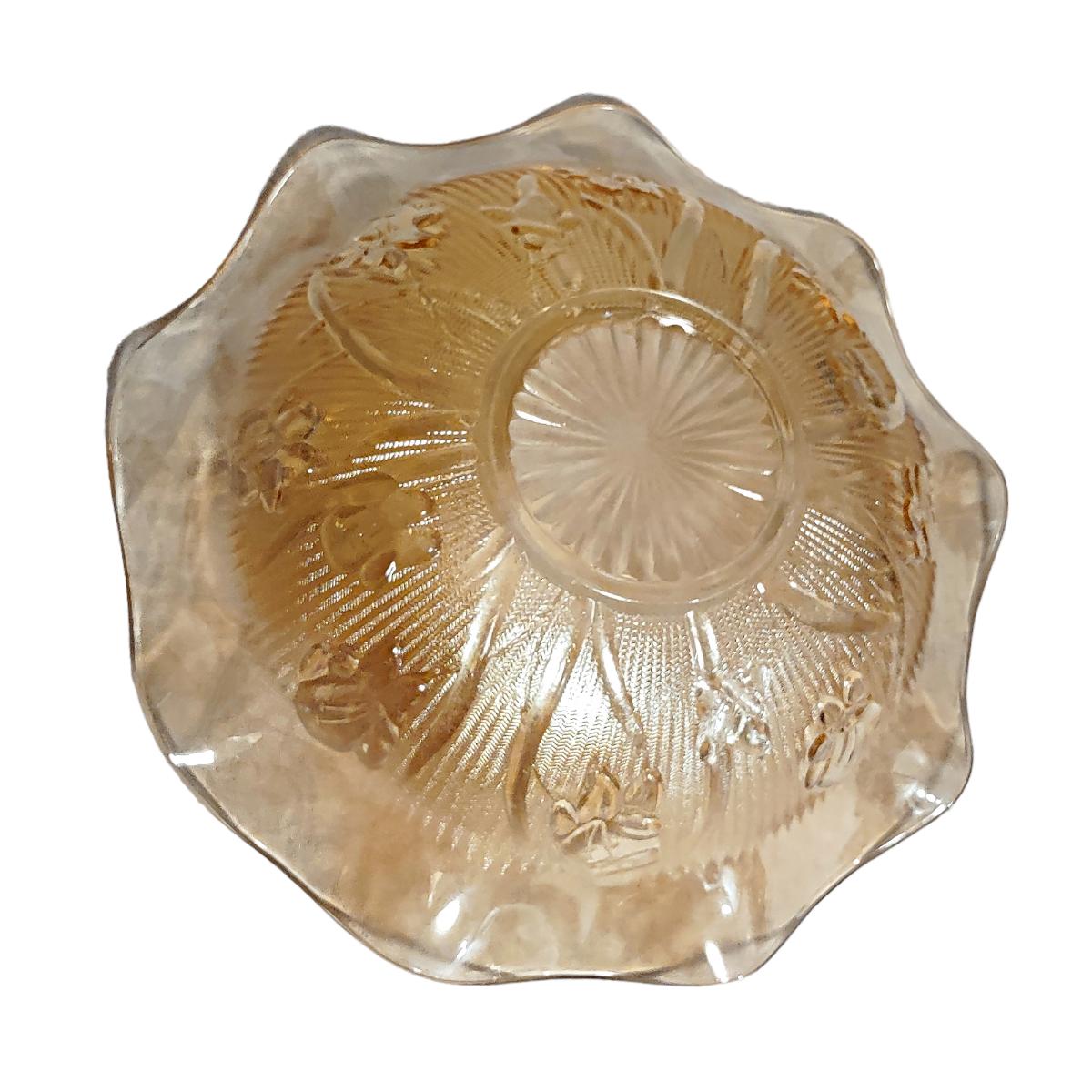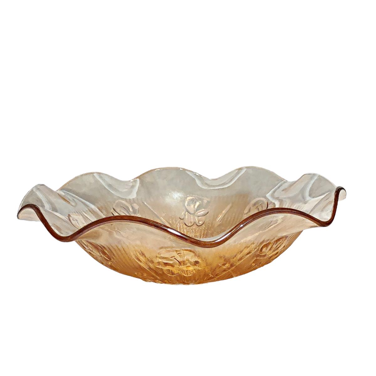 - Vintage Jeanette Glass Large Floragold Ruffled Fruit Bowl