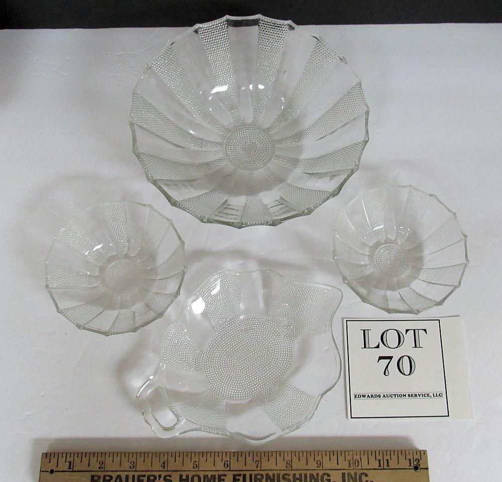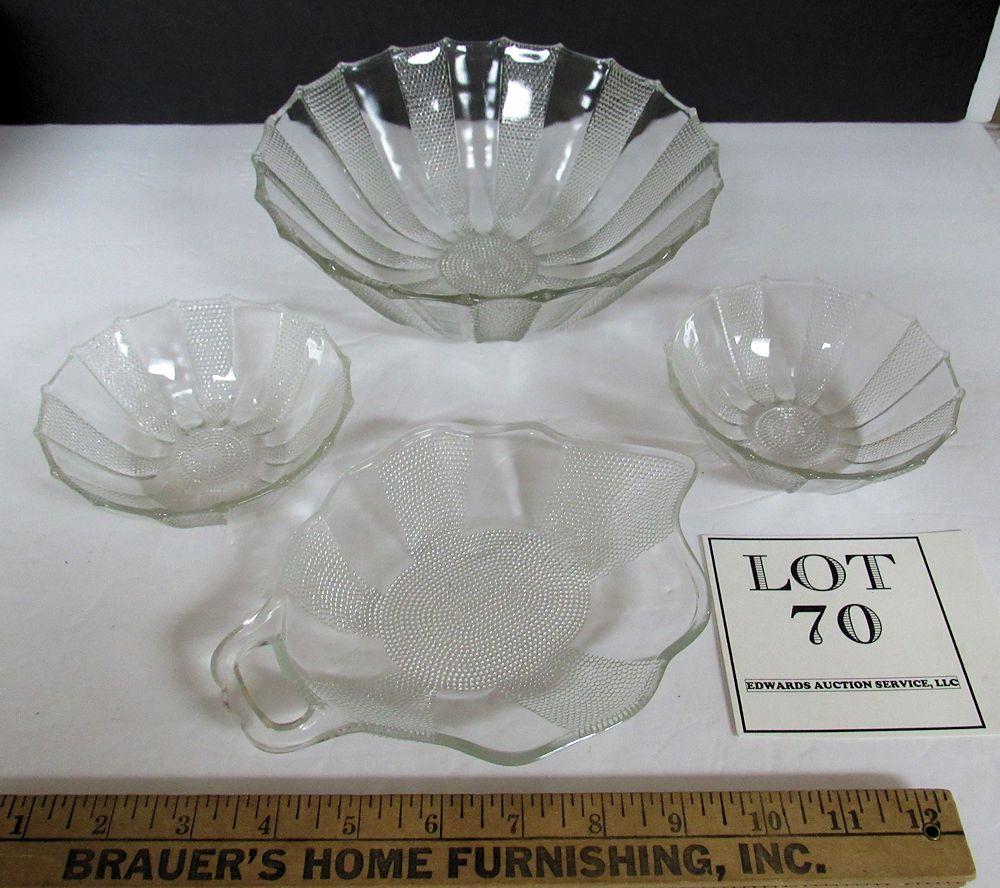 Vintage Jeanette Glass Dew Drop Bowls and Leaf Shaped Dish