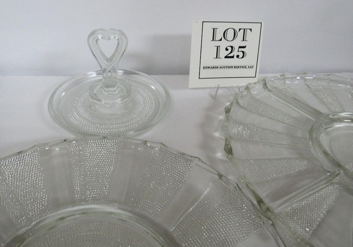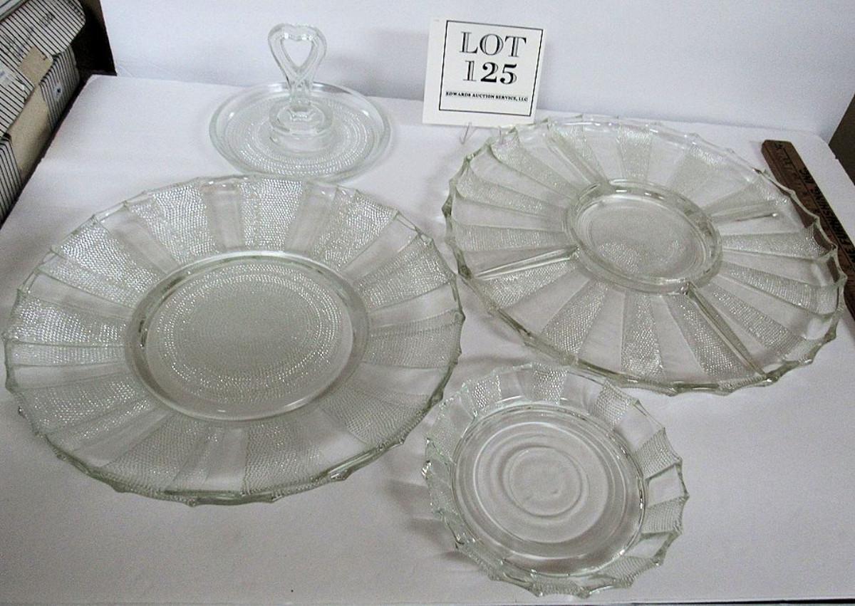 Relish, tray, handled dish, small dish. All appear to be in good shape.