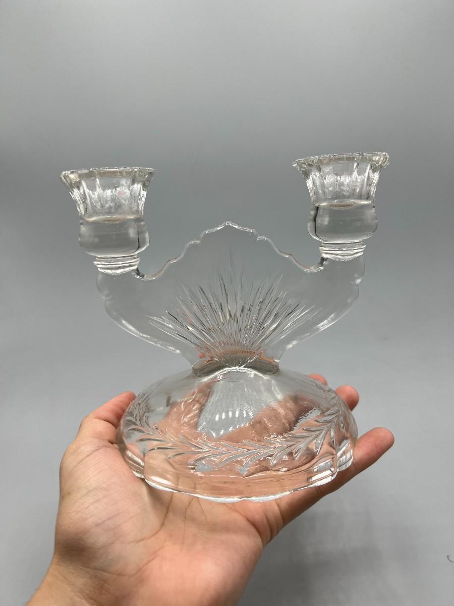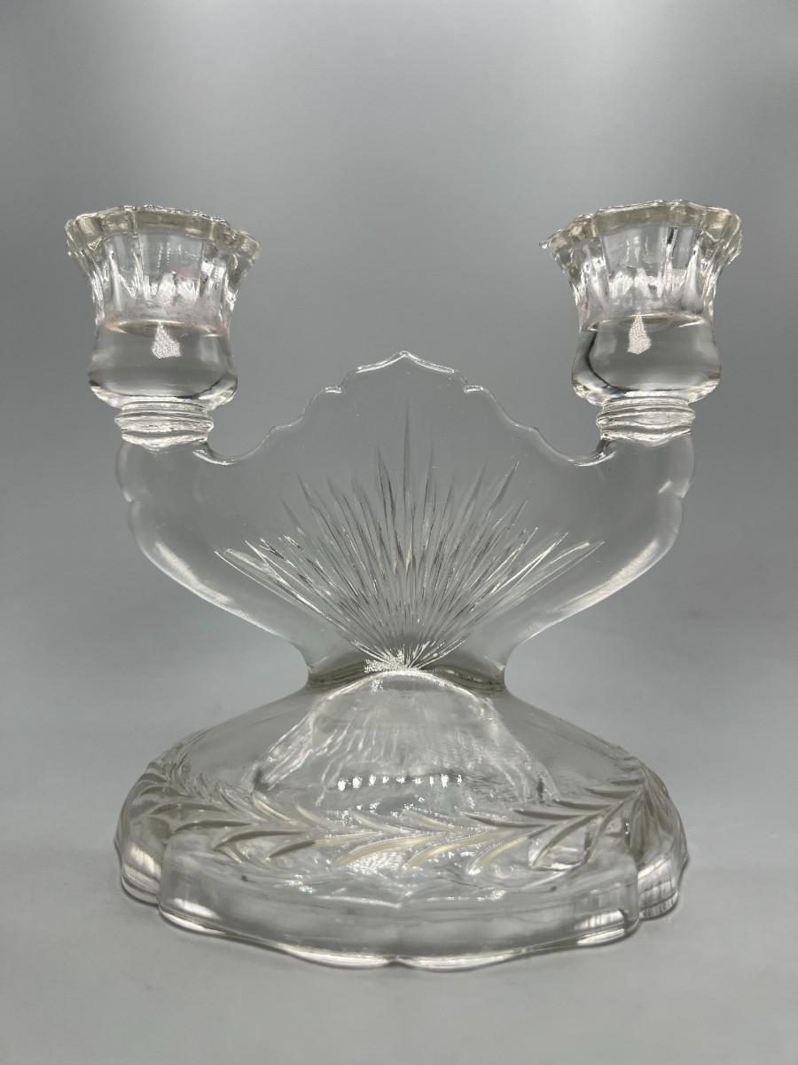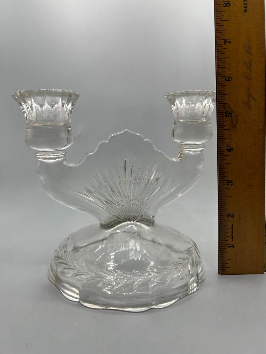 Vintage Jeanette Sunburst Clear Glass Mid Century Candelabra Double Candlestick Holder