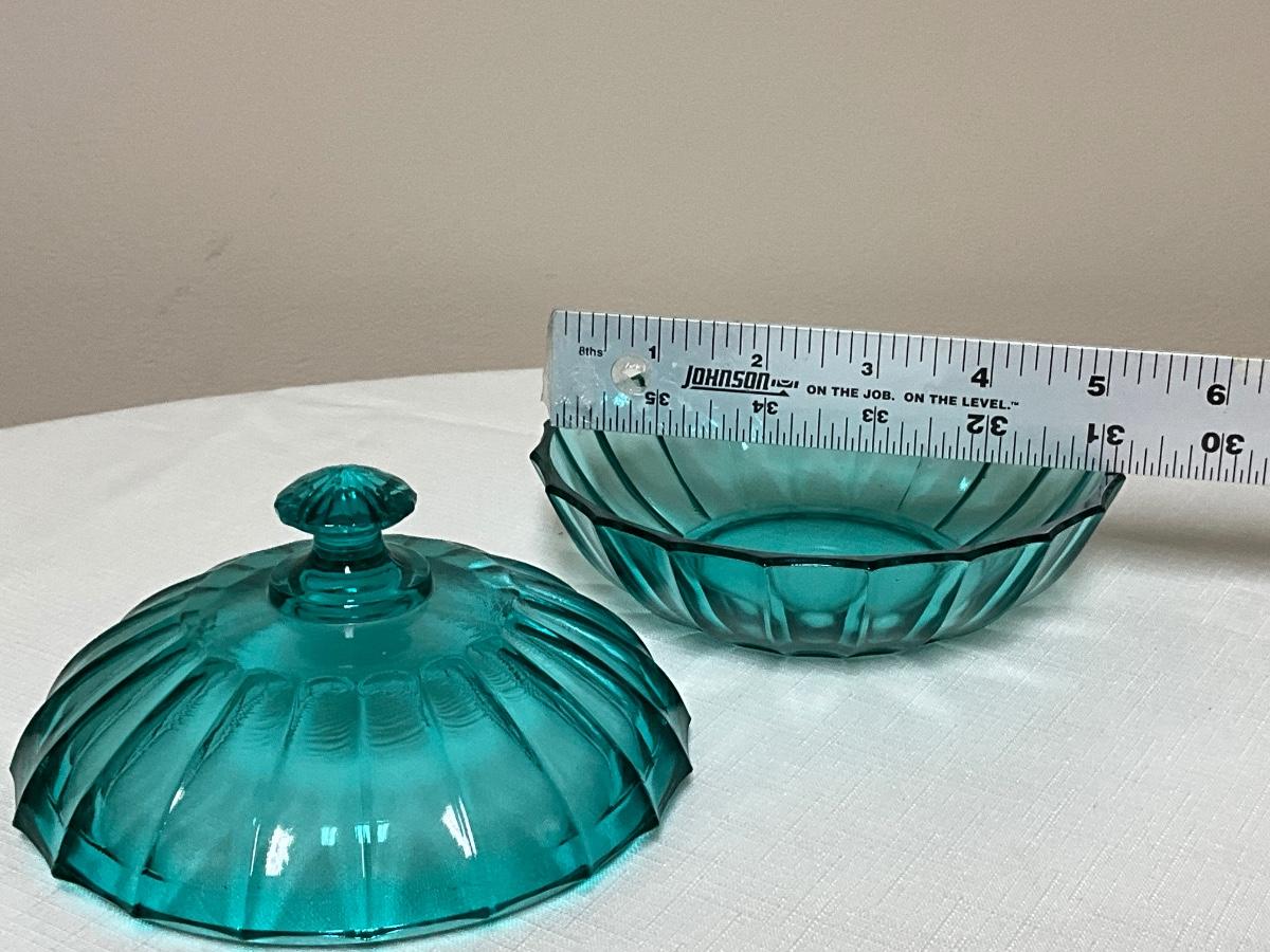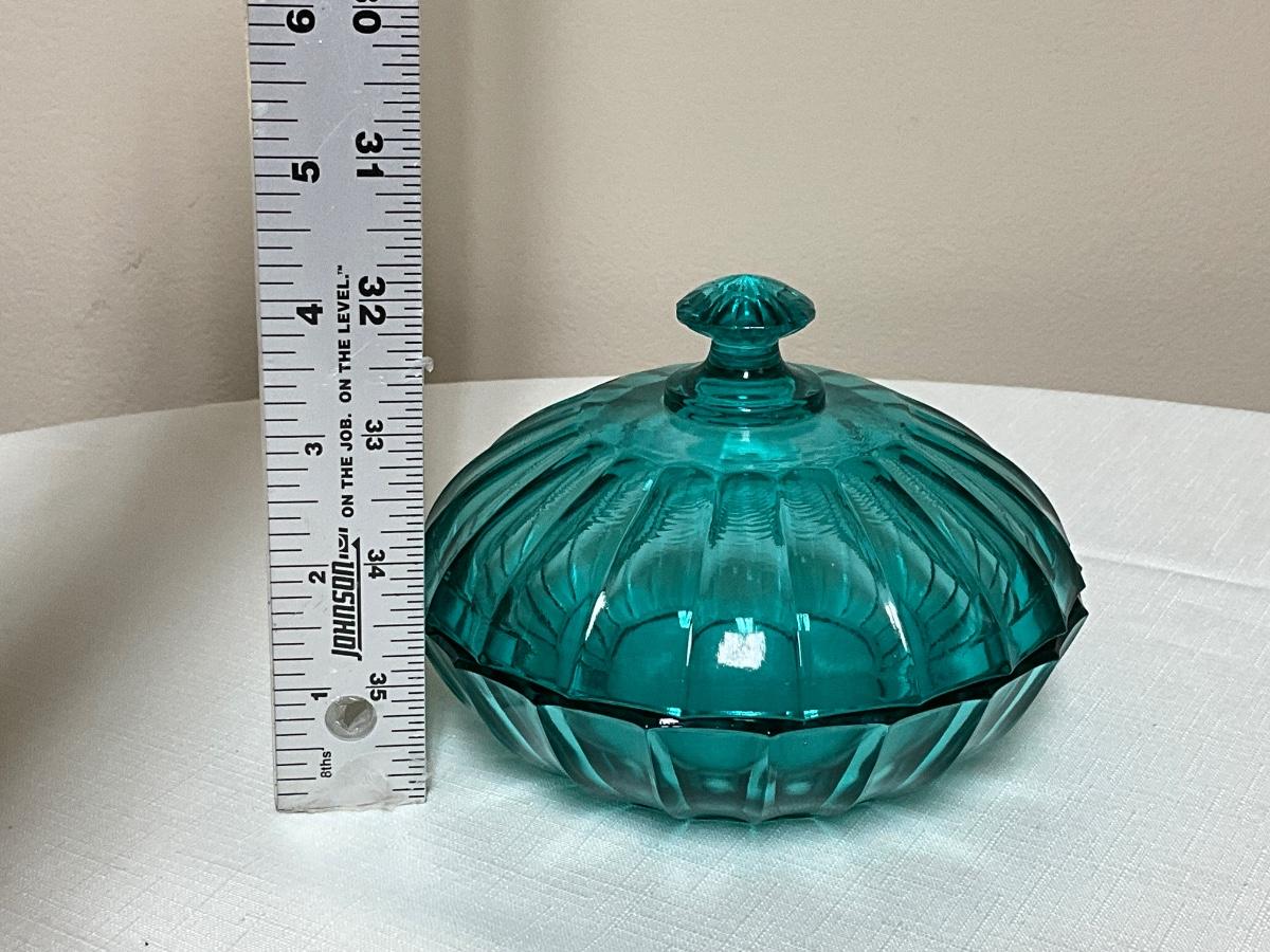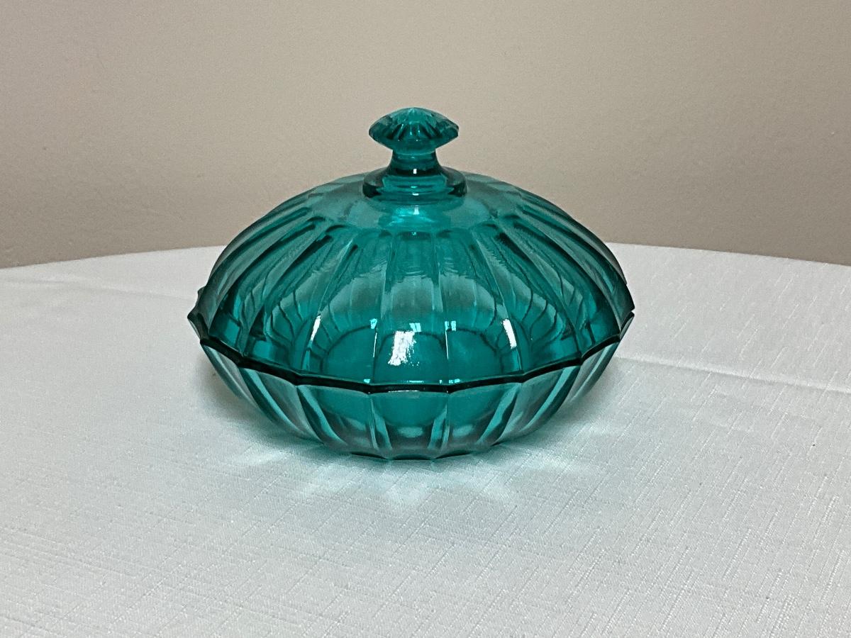 Vintage Jeannette Glass turquoise ribbed candy dish/lid