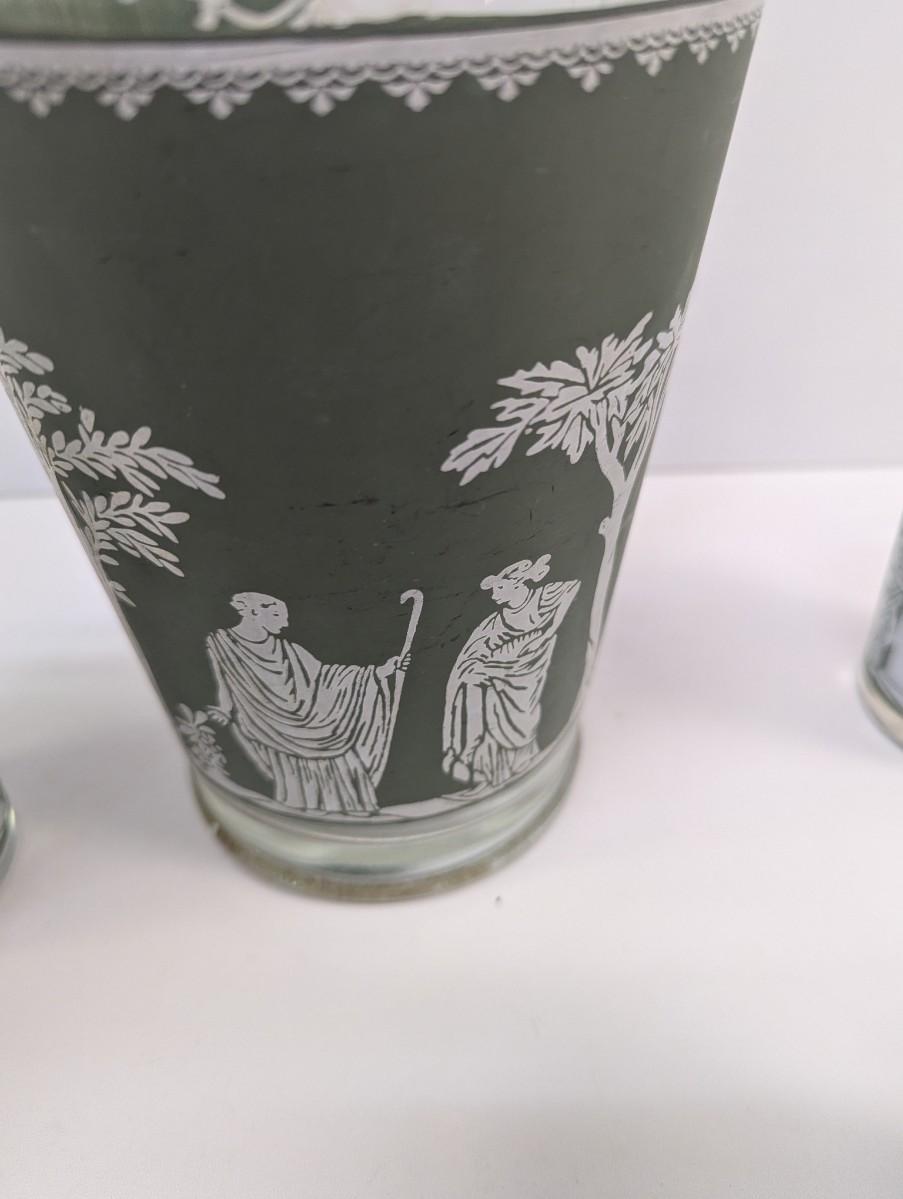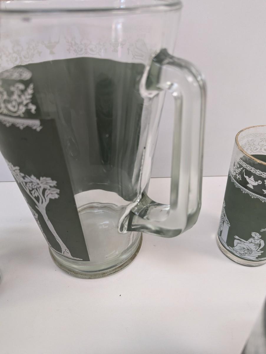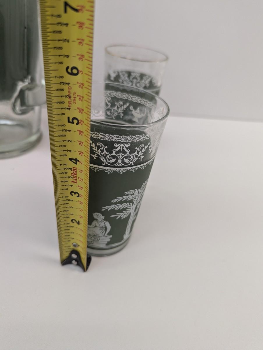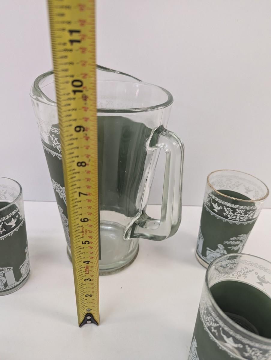 Vintage Jeannette Helenic Green Classic Wedgwood Pitcher & Juice Glasses