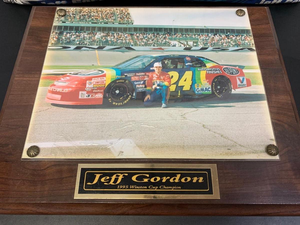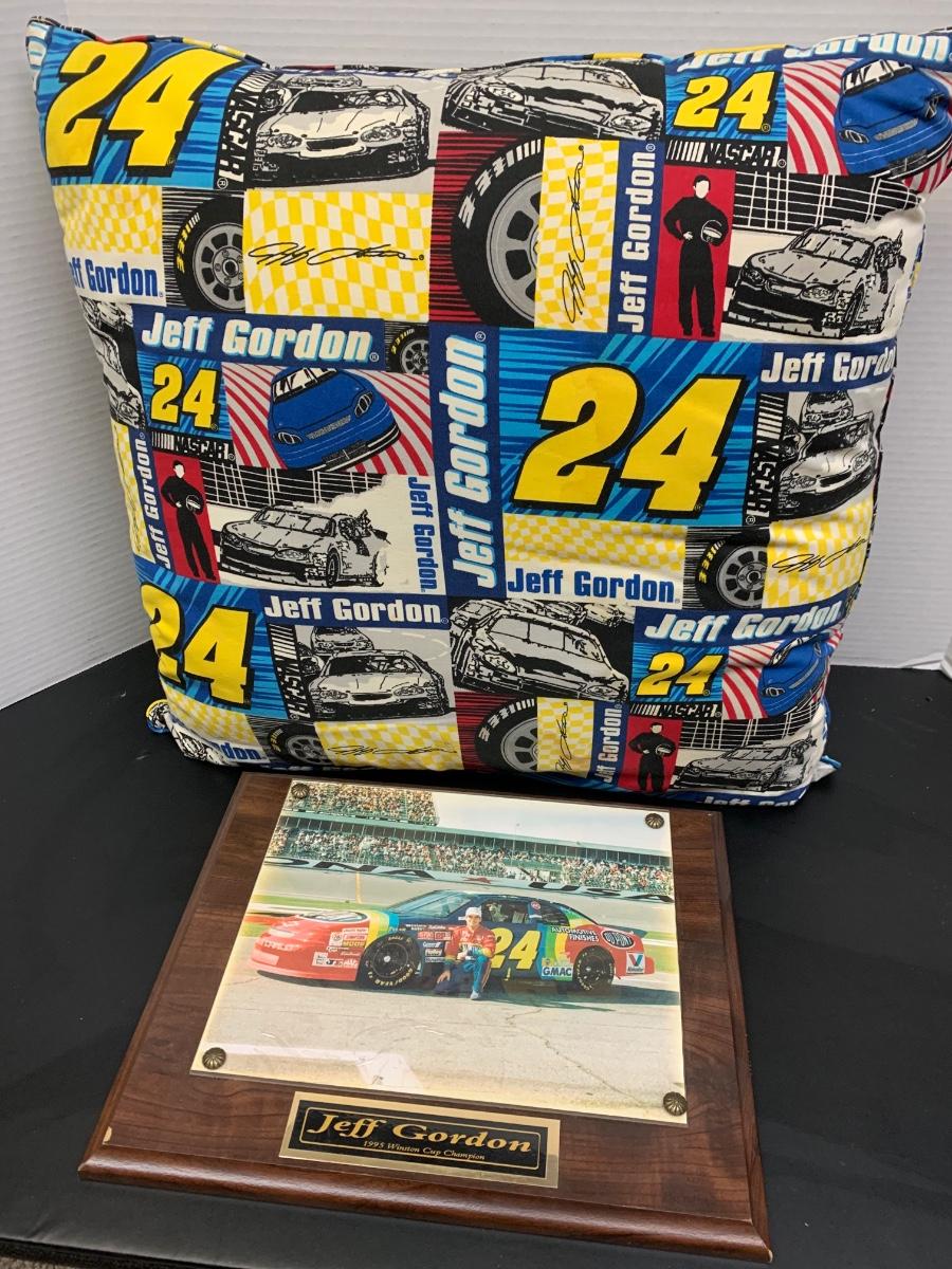 Vintage Jeff Gordon NASCAR Lot: Model Car, Pillow & Photo Plaque (3 items)