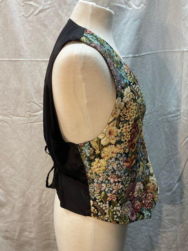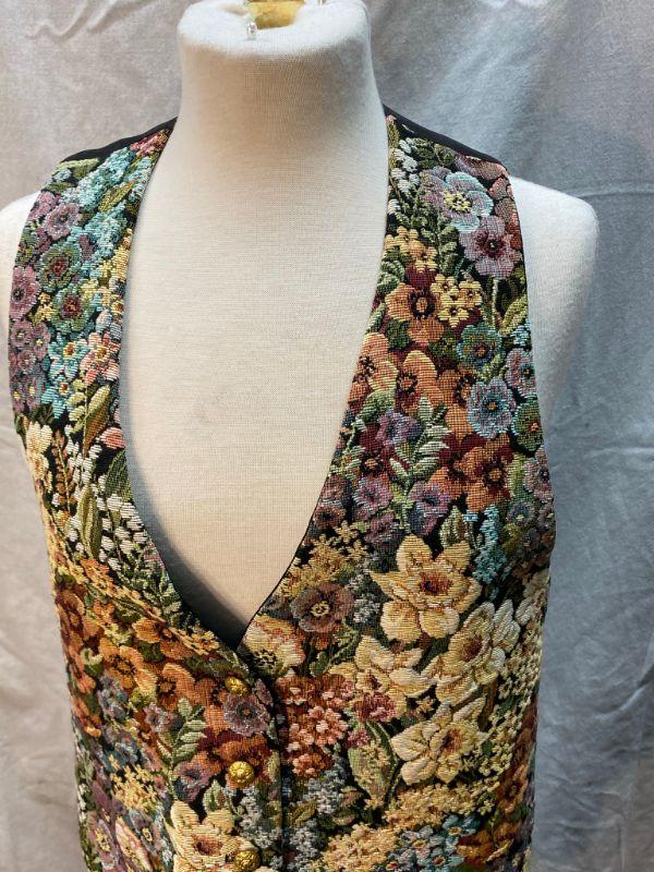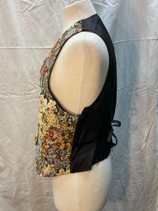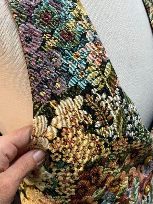 Vintage Jennie Vaughn Designs Floral Tapestry Needlepoint Vest Size XL YD#020-1220-02061