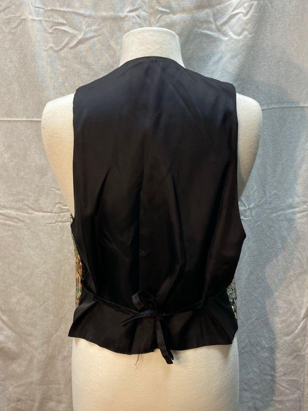 Vintage Jennie Vaughn Designs vest. Pastel floral needlepoint front, solid black back. Gold buttons. Size XL. Good condition.