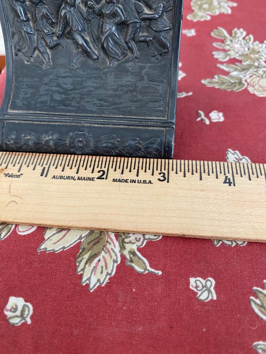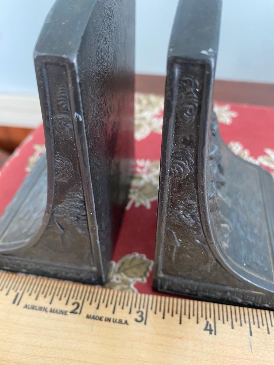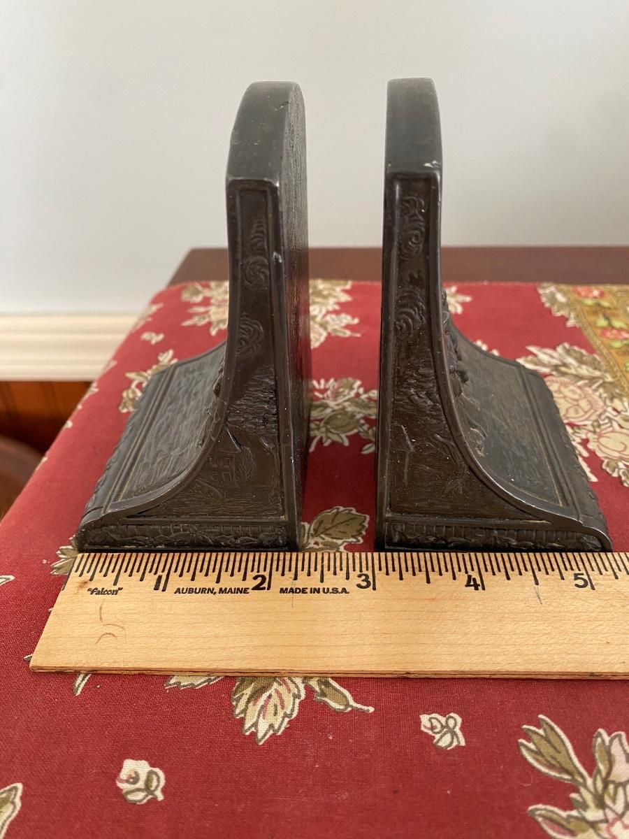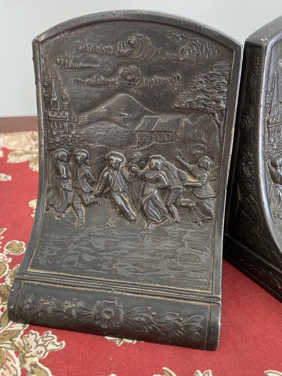 Vintage metal Jennings Brothers square dance themed bookends, 4” high. Marked J.B. 2147