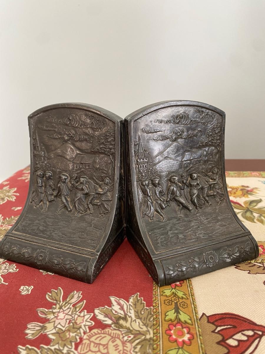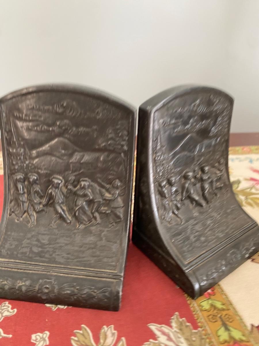 Vintage metal Jennings Brothers square dance themed bookends, 4” high. Marked J.B. 2147