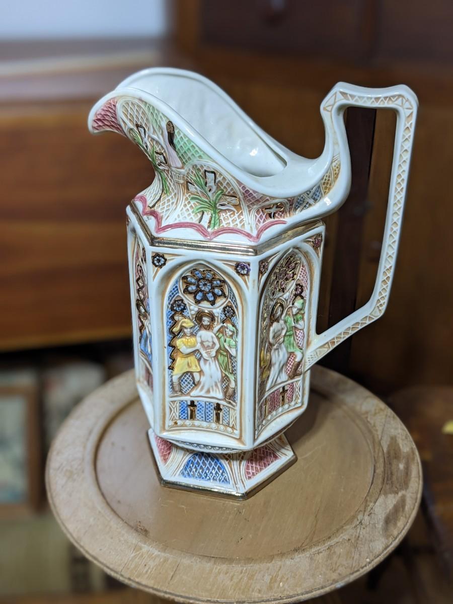 Vintage Jesus Stations Of The Cross Ceramic Pitcher