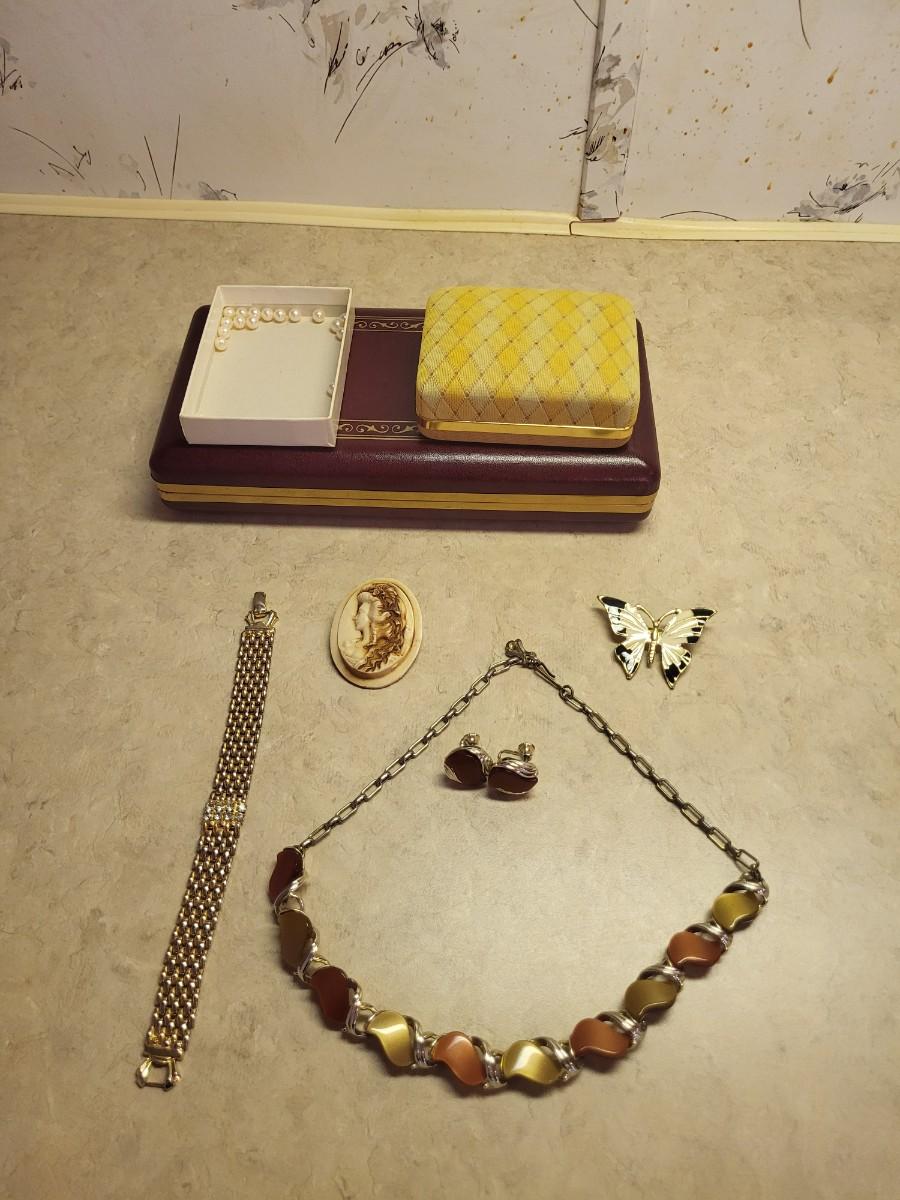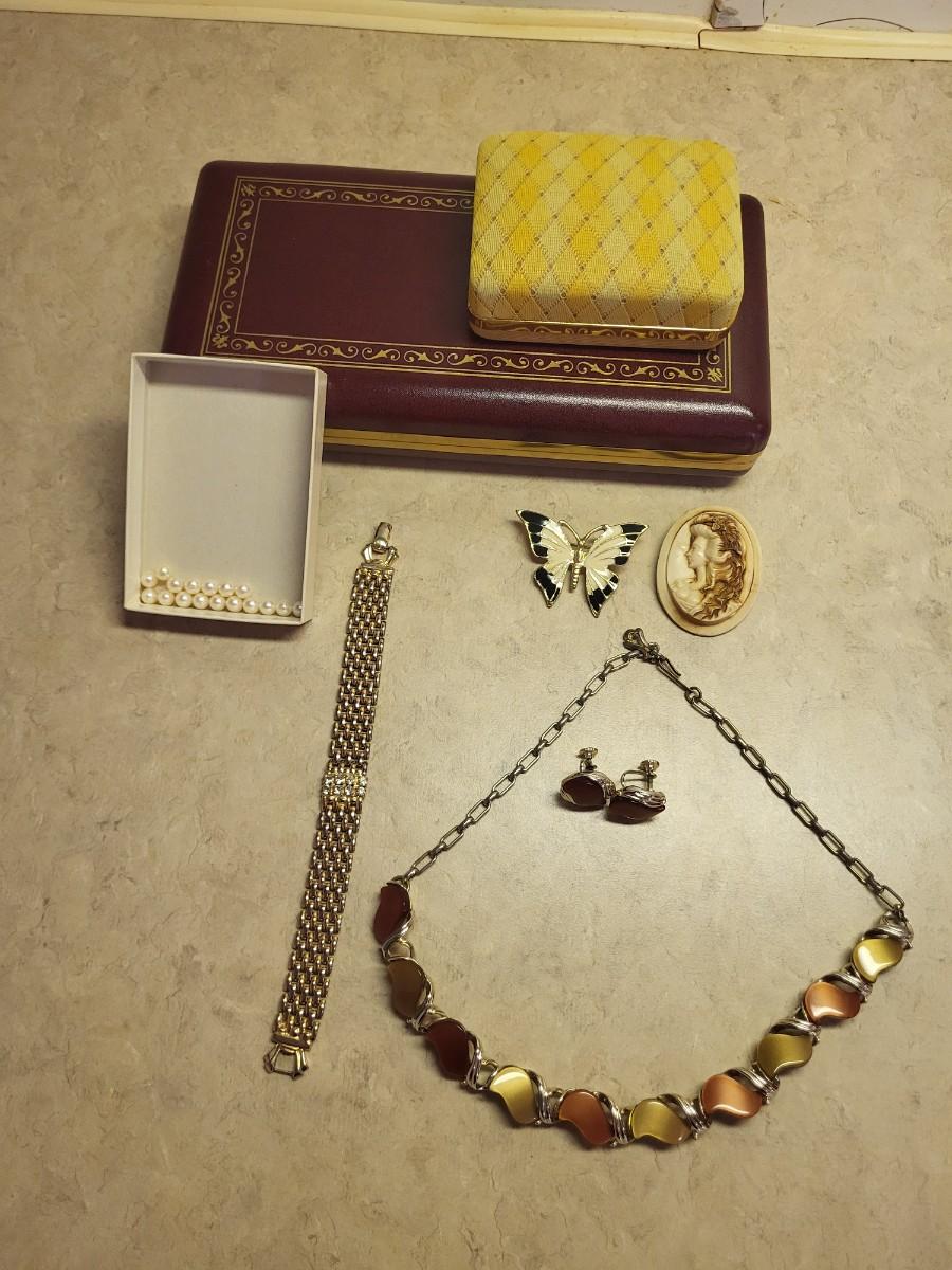 VINTAGE JEWELRY, GENUINE PEARLS AND 2 JEWELRY BOXES