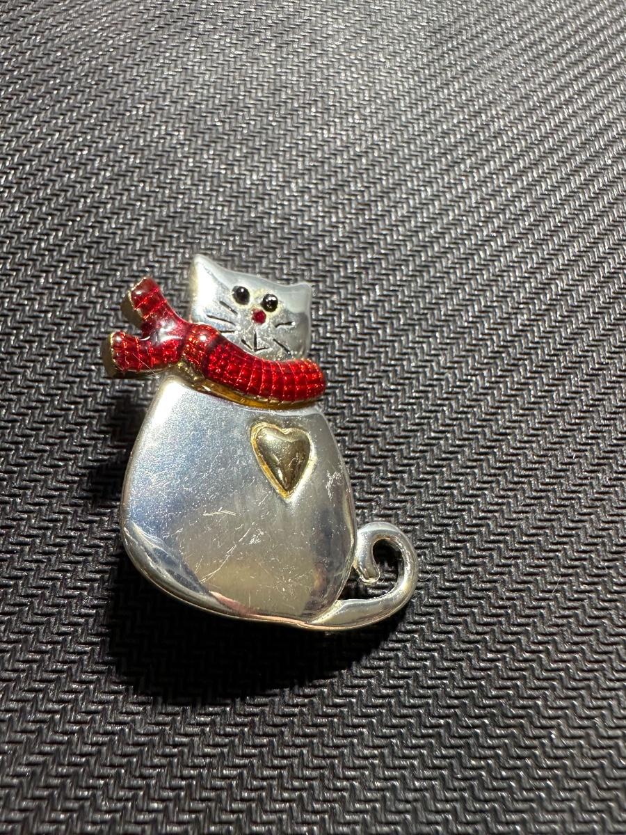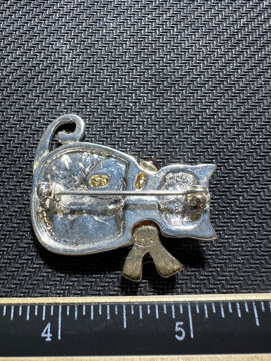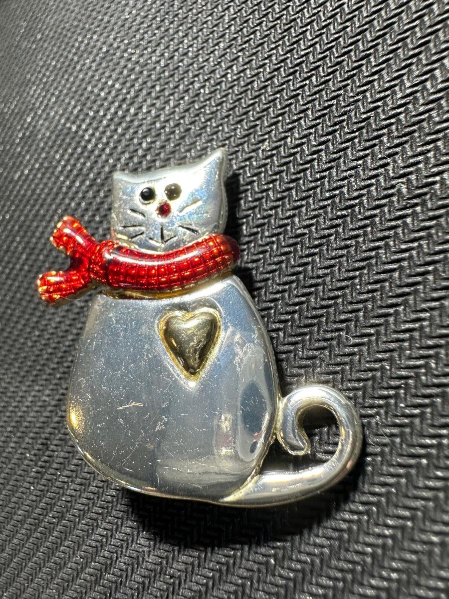 Vintage Jewelry Adorable Silver Mirror Kitty Cat Scarf Pin Brooch