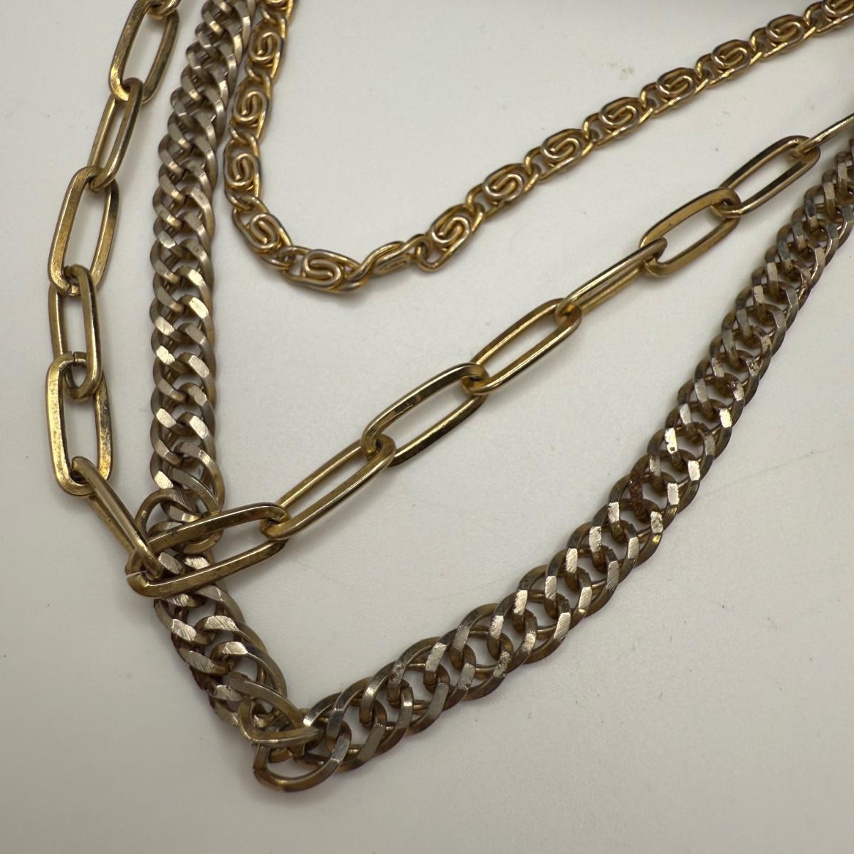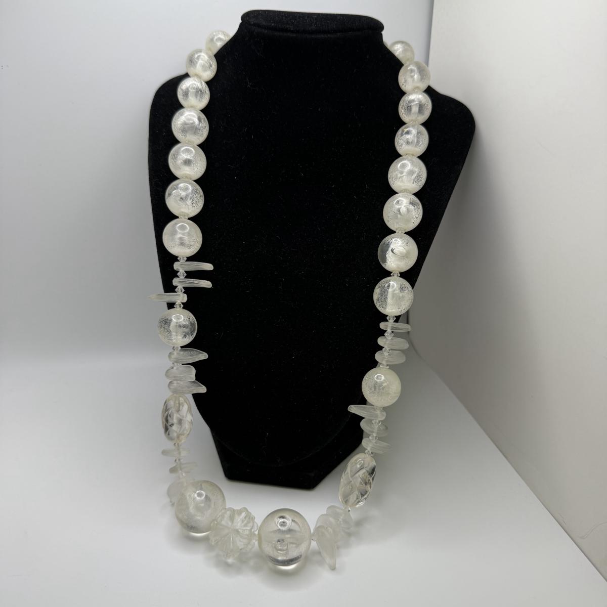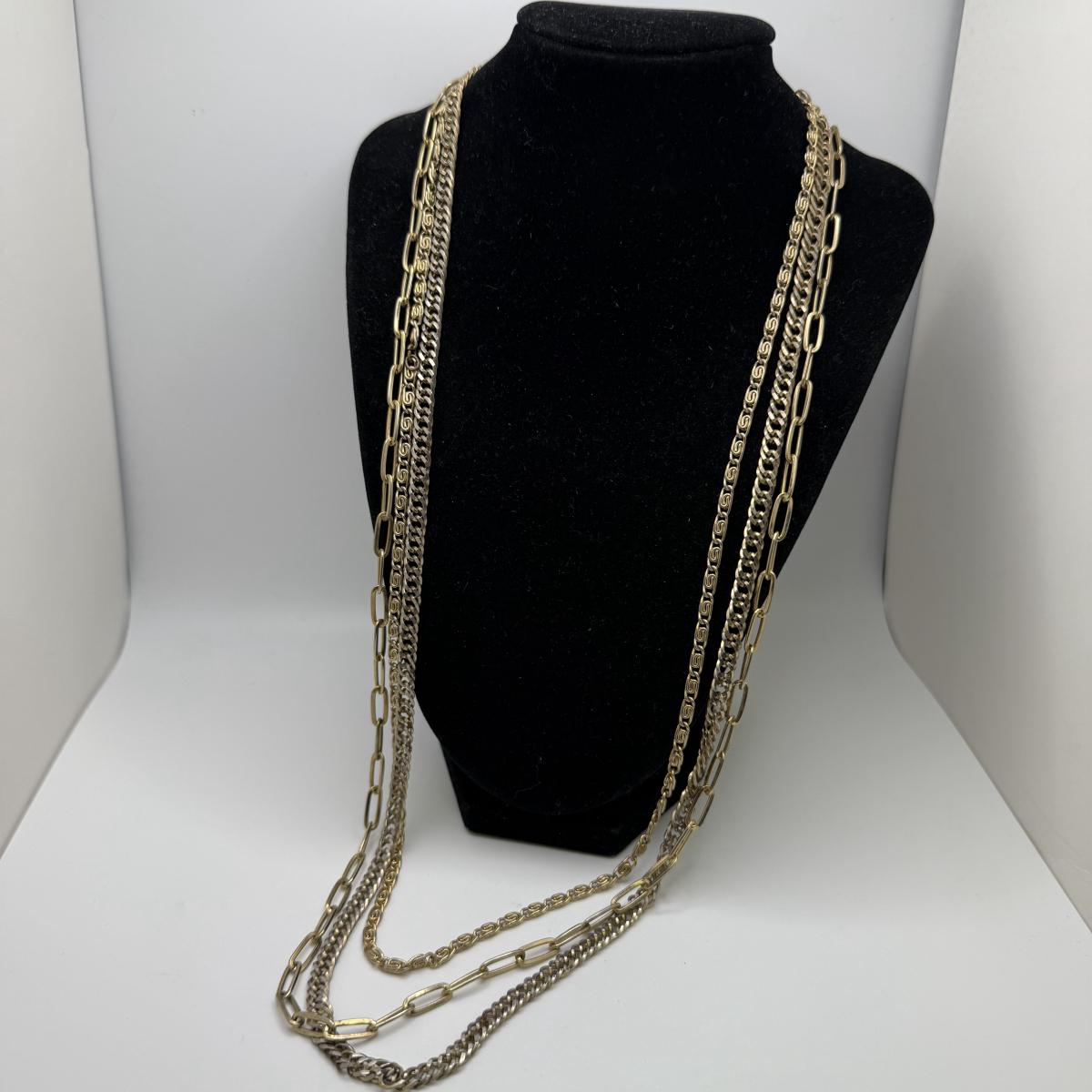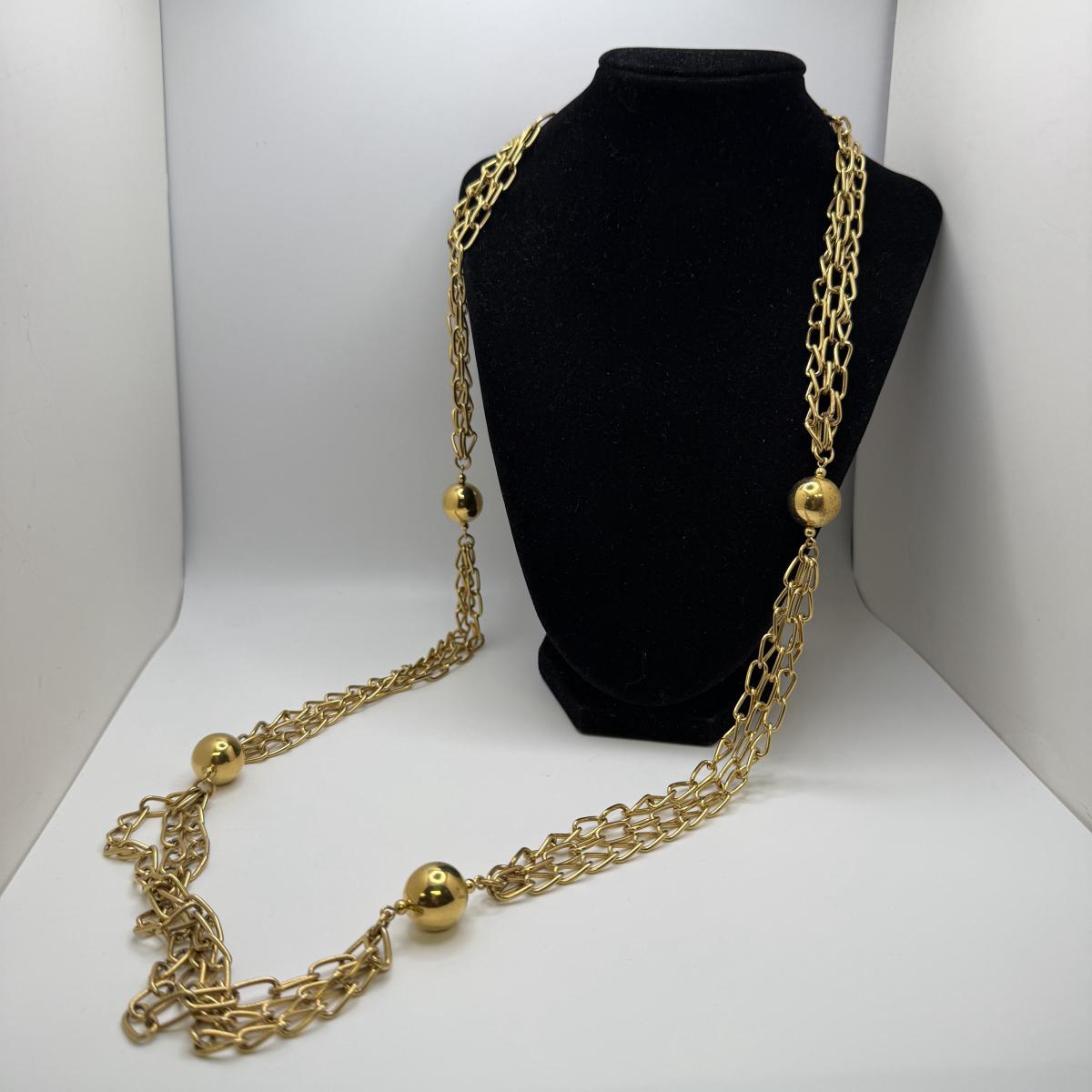 16 necklaces, one beaded bracelet, four bangle/cuff bracelets, 11 pins/brooches, one pair of Anne Klein post earrings, and five loose pendant comprise this lot of vintage and beaded jewelry. In the necklaces you’ll find metal, wood, shells, some carved stone, and more. The longest necklace is the Monet double layer gold chain with four gold beads and is approximately 40”. Please see photos for details and jewelry markings.