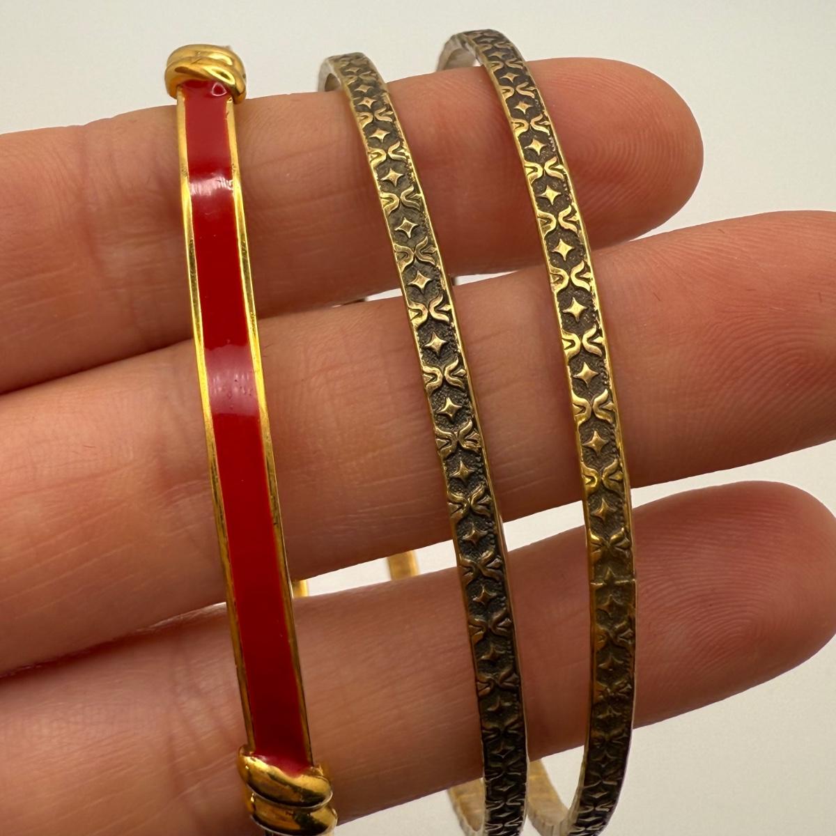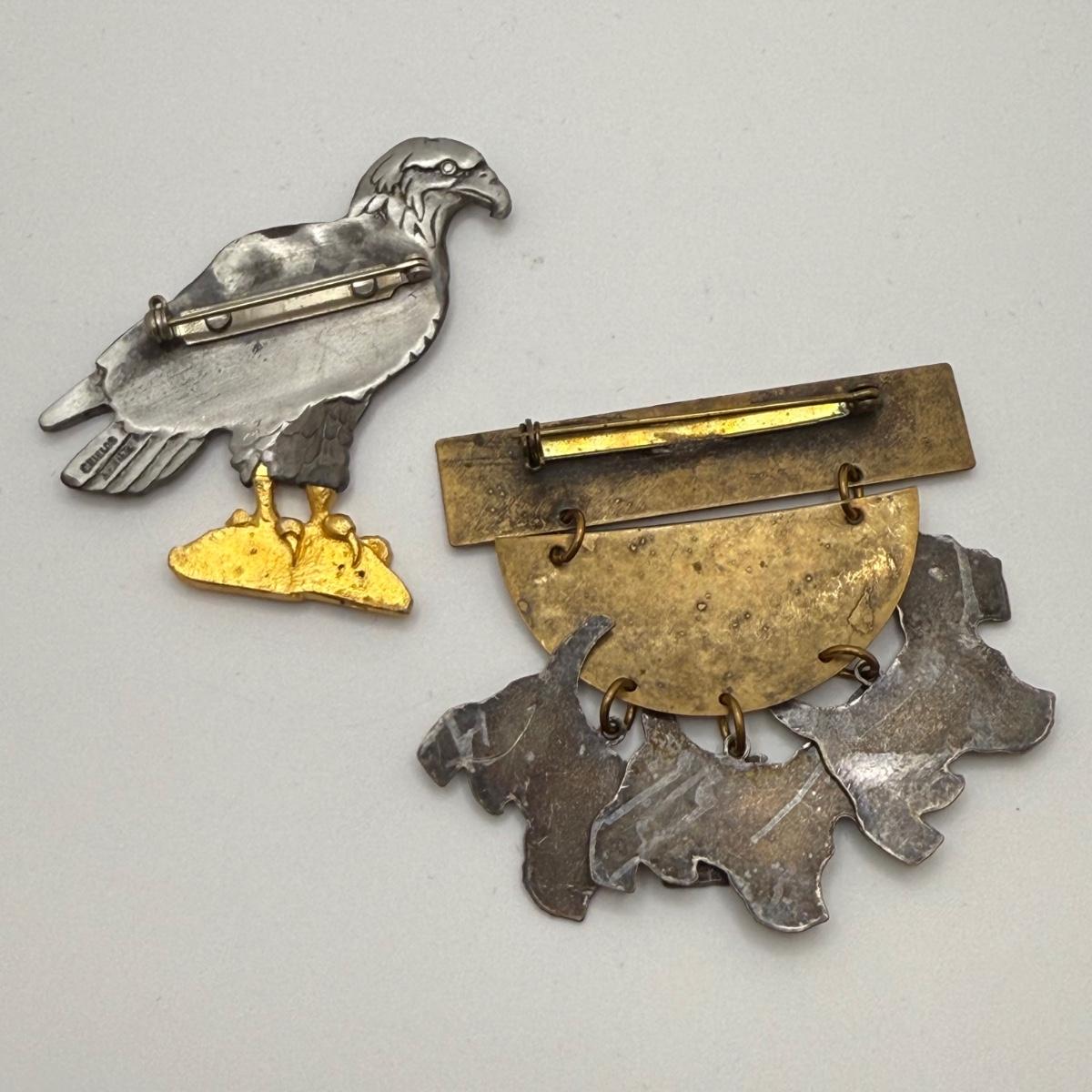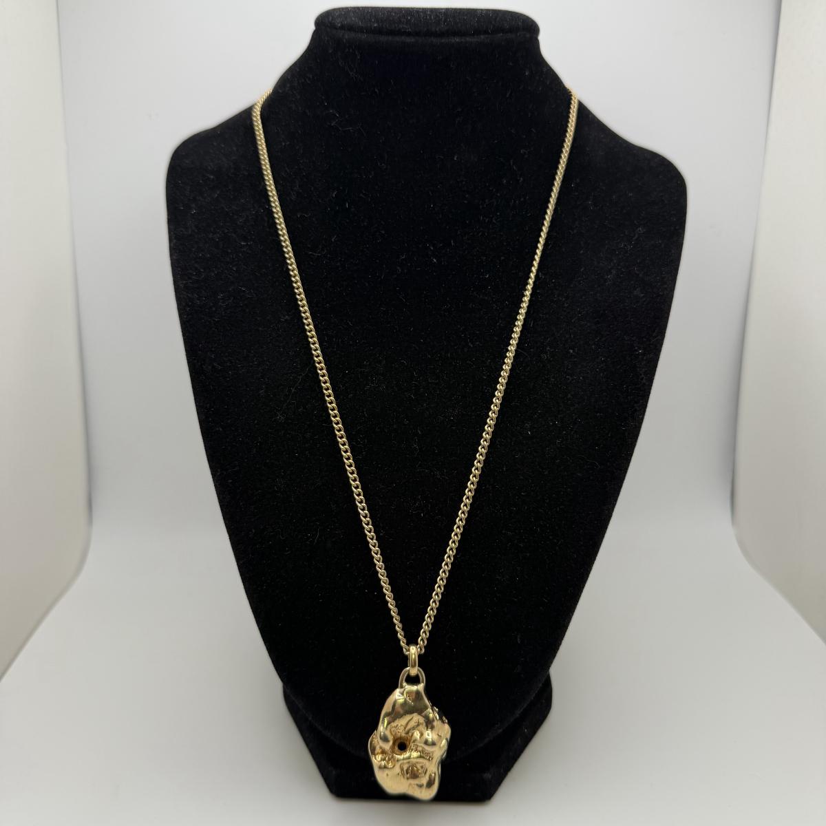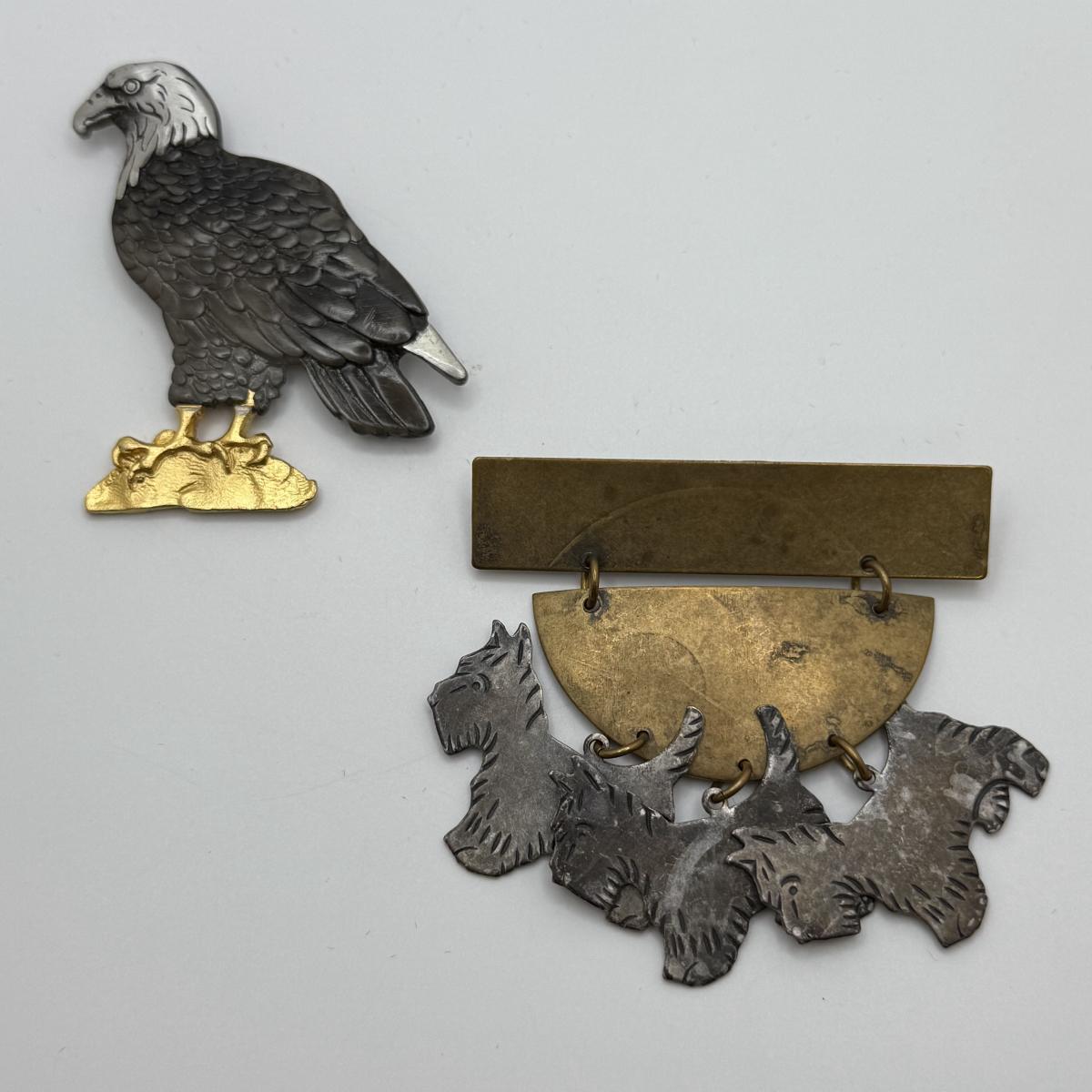 16 necklaces, one beaded bracelet, four bangle/cuff bracelets, 11 pins/brooches, one pair of Anne Klein post earrings, and five loose pendant comprise this lot of vintage and beaded jewelry. In the necklaces you’ll find metal, wood, shells, some carved stone, and more. The longest necklace is the Monet double layer gold chain with four gold beads and is approximately 40”. Please see photos for details and jewelry markings.
