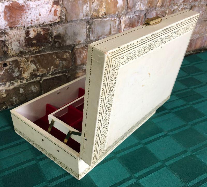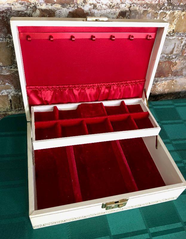 Here is a red velvet-lined jewelry box..11x8x4"....Some use...