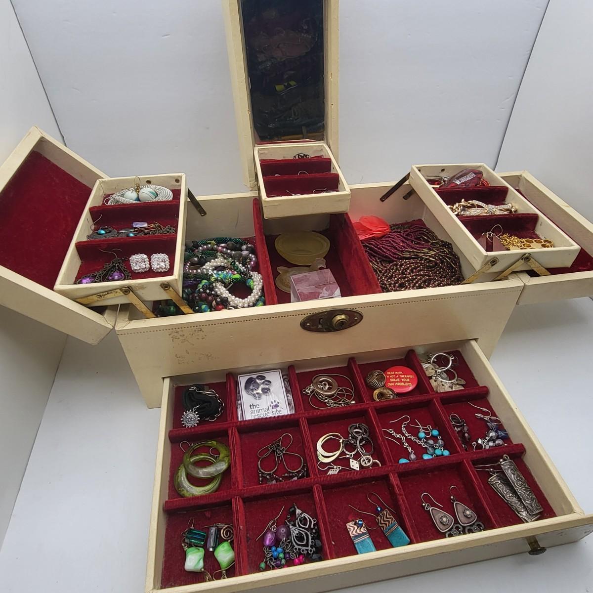 Vintage Jewelry Box & All The Fashion Jewelry Inside