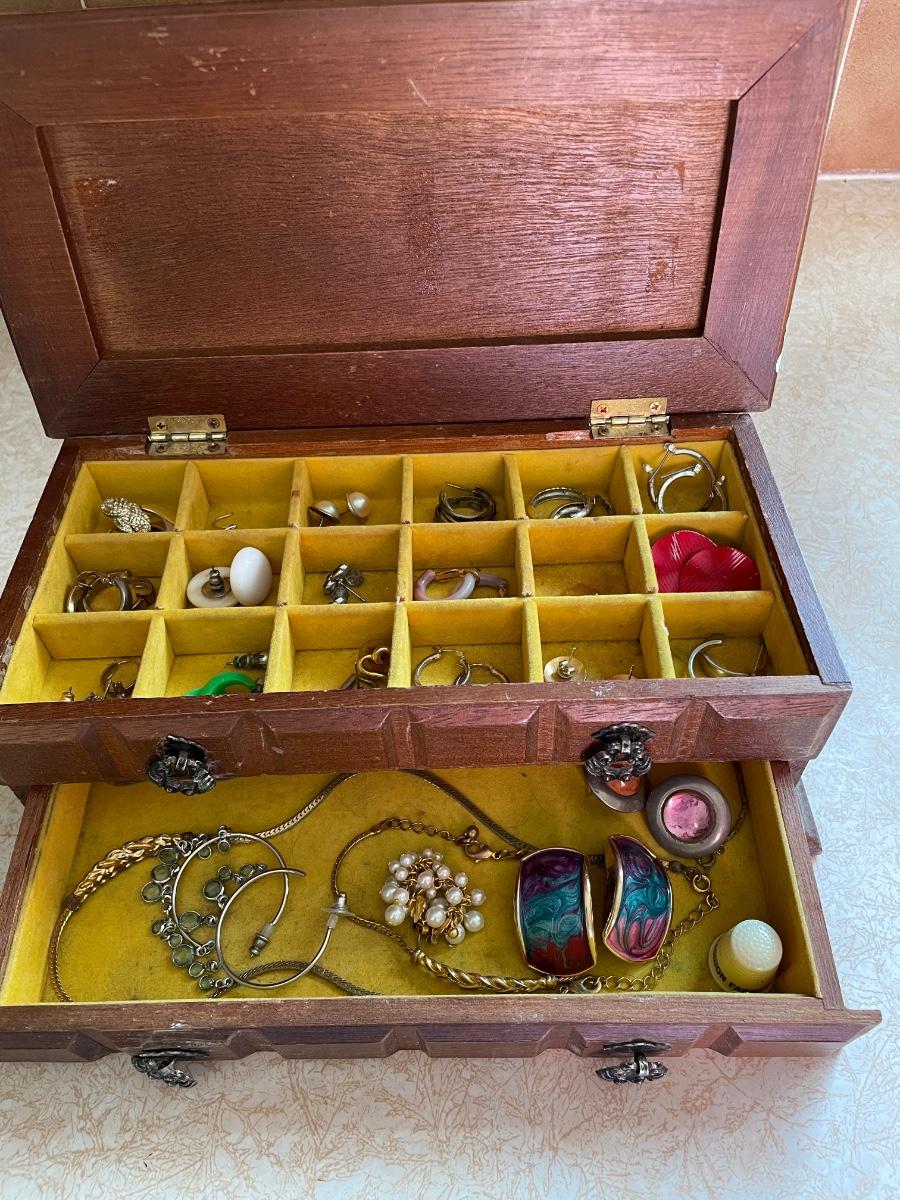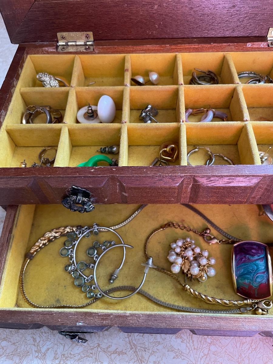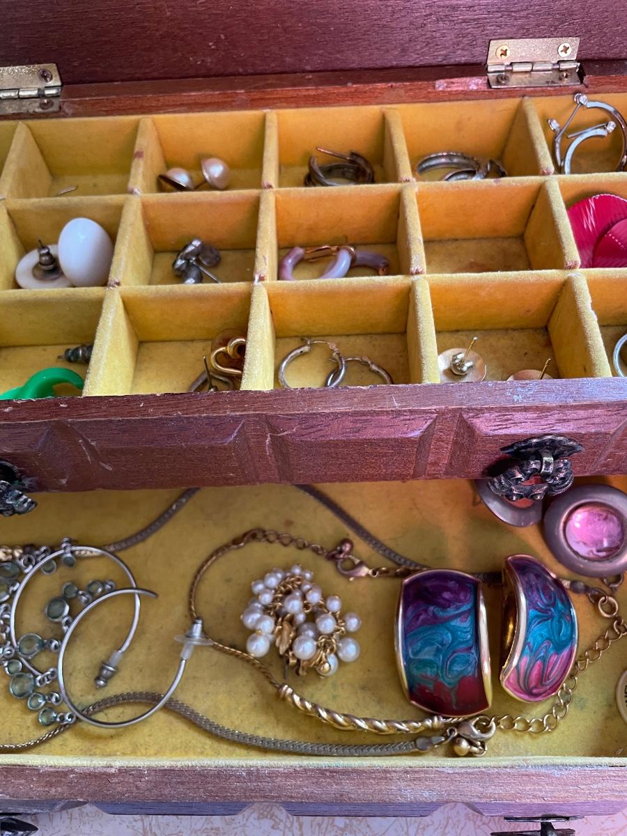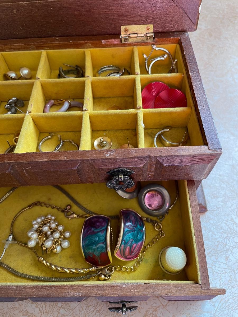 VINTAGE JEWELRY BOX WITH COSTUME JEWELRY
