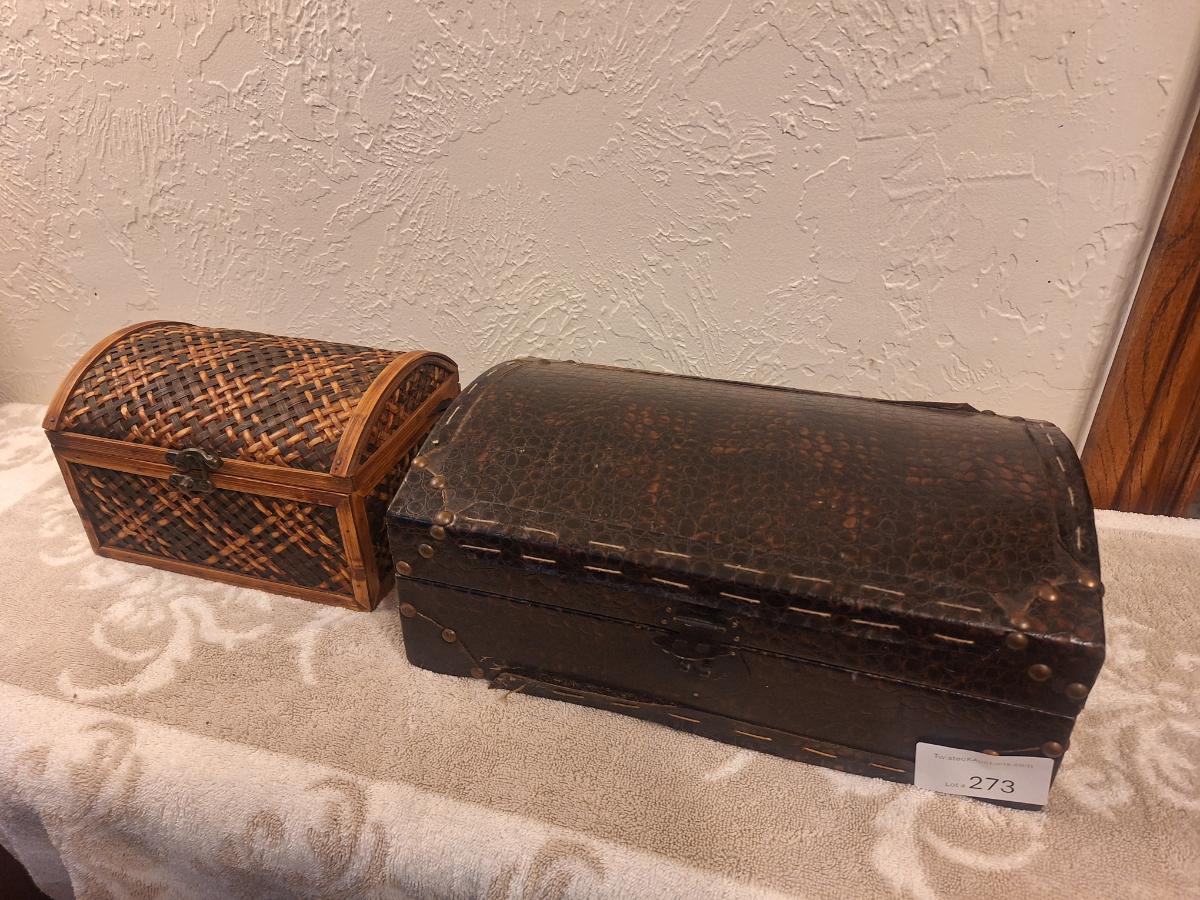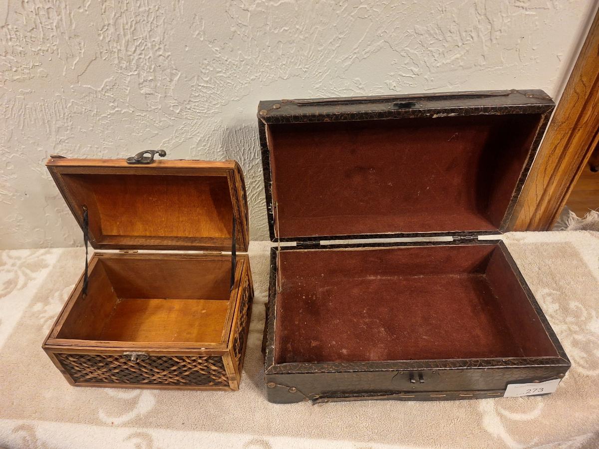vintage jewelry boxes or small desktop trunks