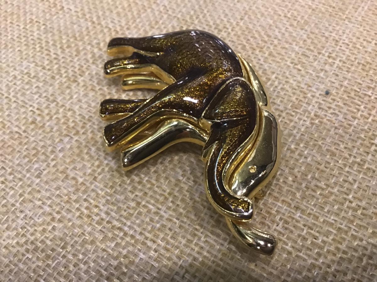 VINTAGE Jewelry Brown Enamel Moma & Baby Elephants Pin Brooch 2.5" Goldtone