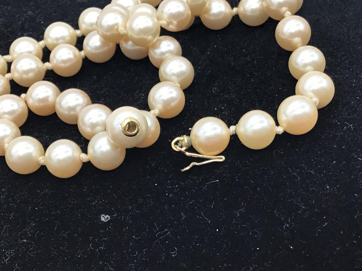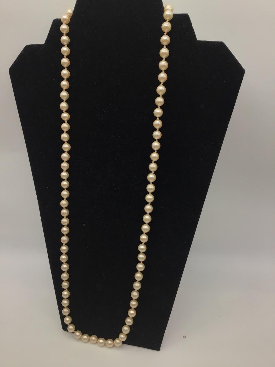 Vintage Jewelry Faux Pearl Light Gold Champagne Matinee Knotted Necklace