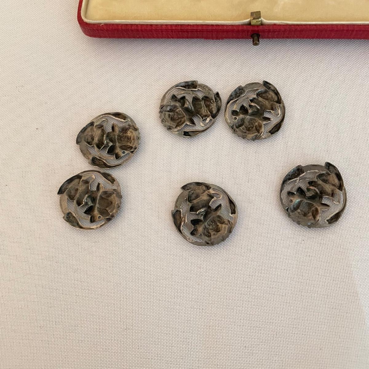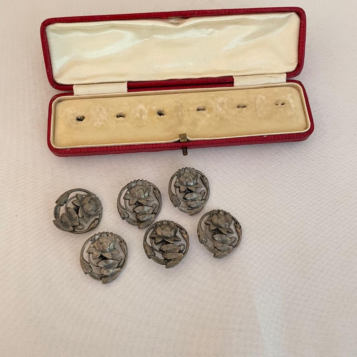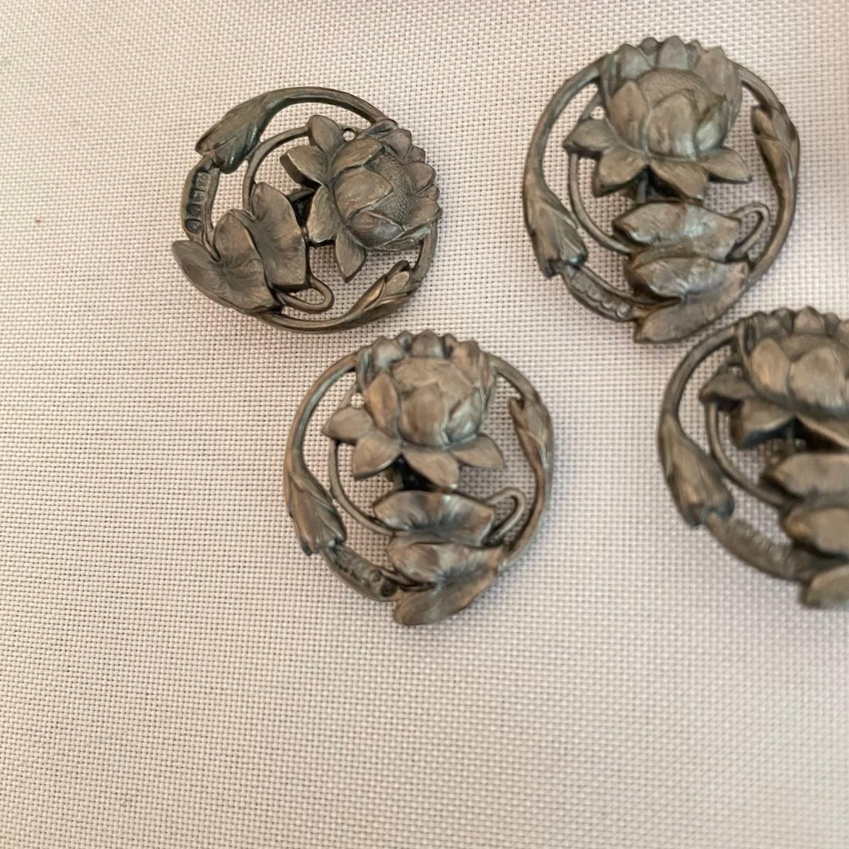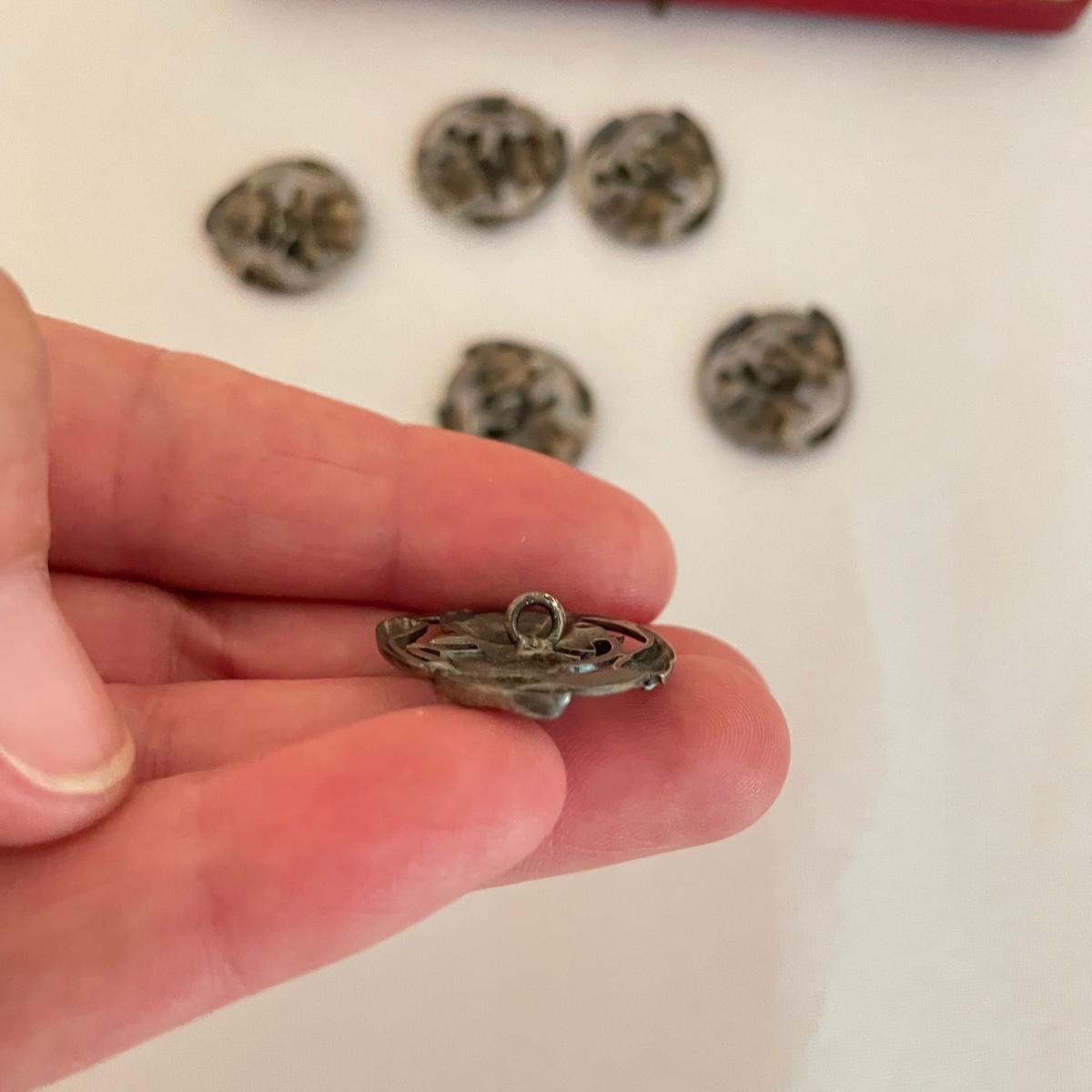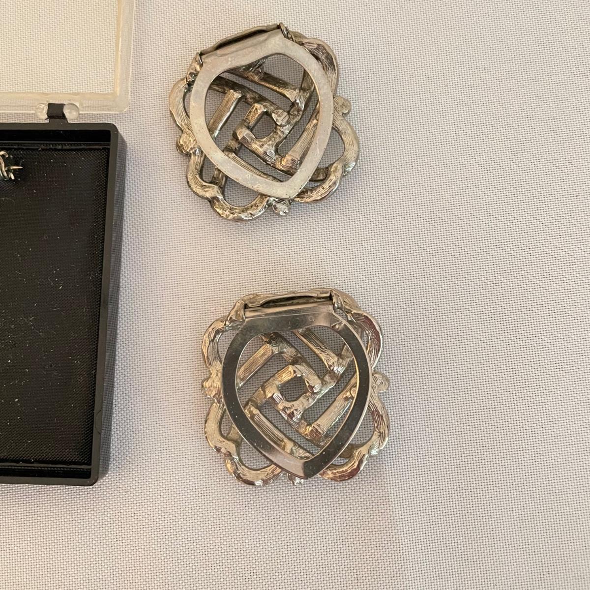 Vintage jewelry including a Sterling and enamel pendant by McQueen Way, two pairs of clip earrings, multiple brooches, three clips, six vintage buttons, and a long thick bright gold colored chain. See images. Shipping available.