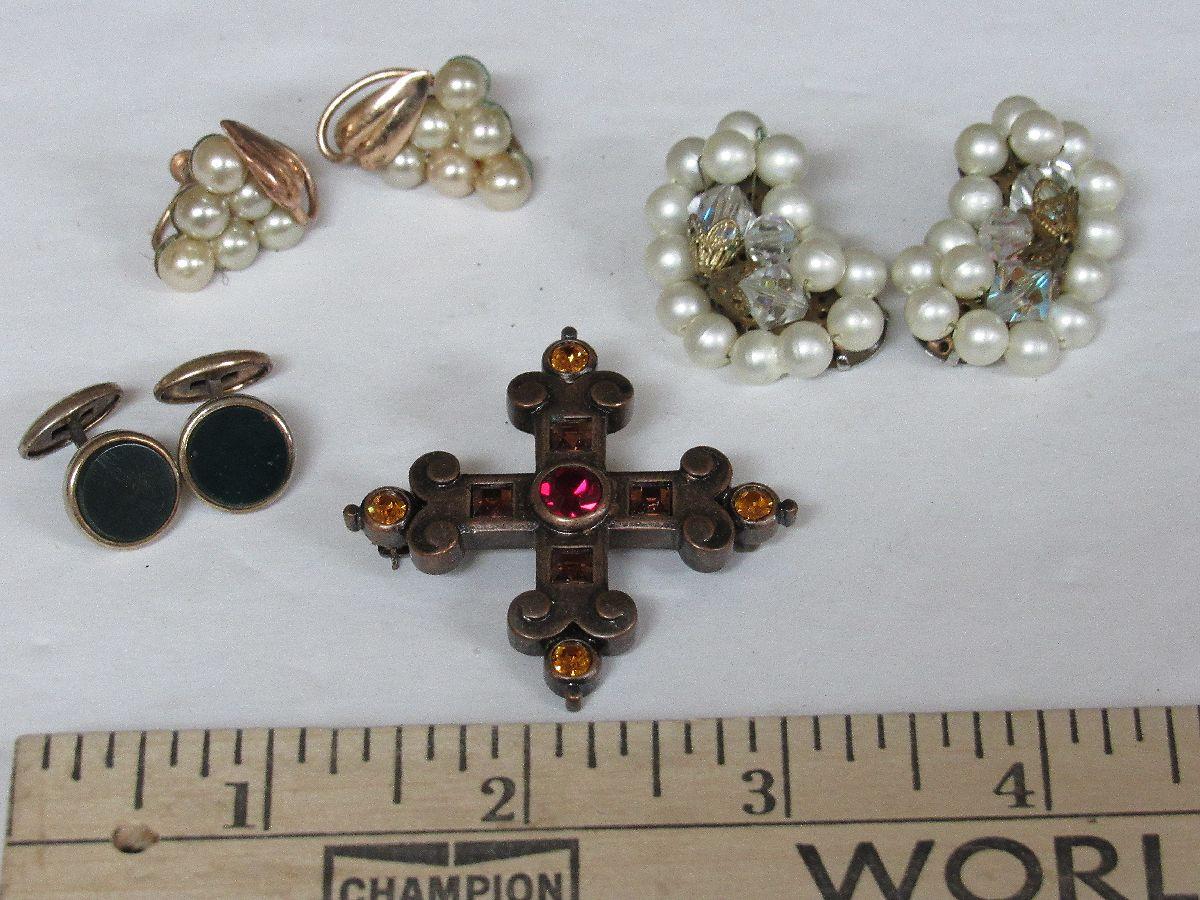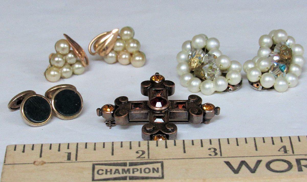 Vintage Jewelry Lot, Earrings, Cufflinks and Pin
