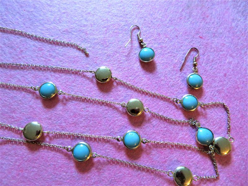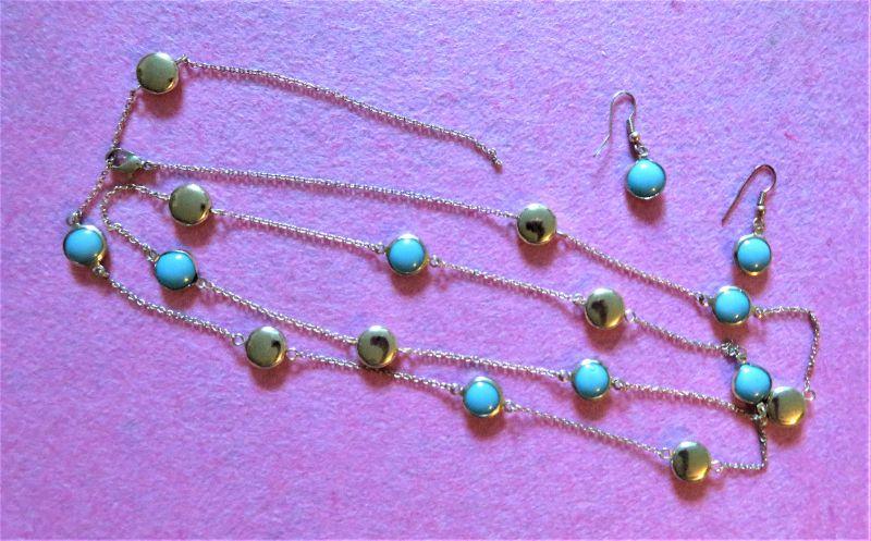 nice Vintage Jewelry Turquoise Necklace & Earrings. In Good Condition for its age.