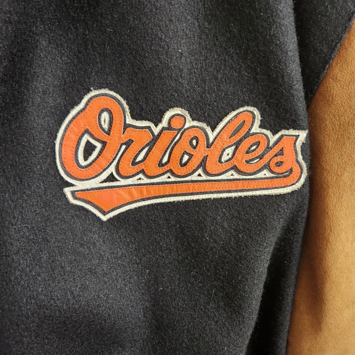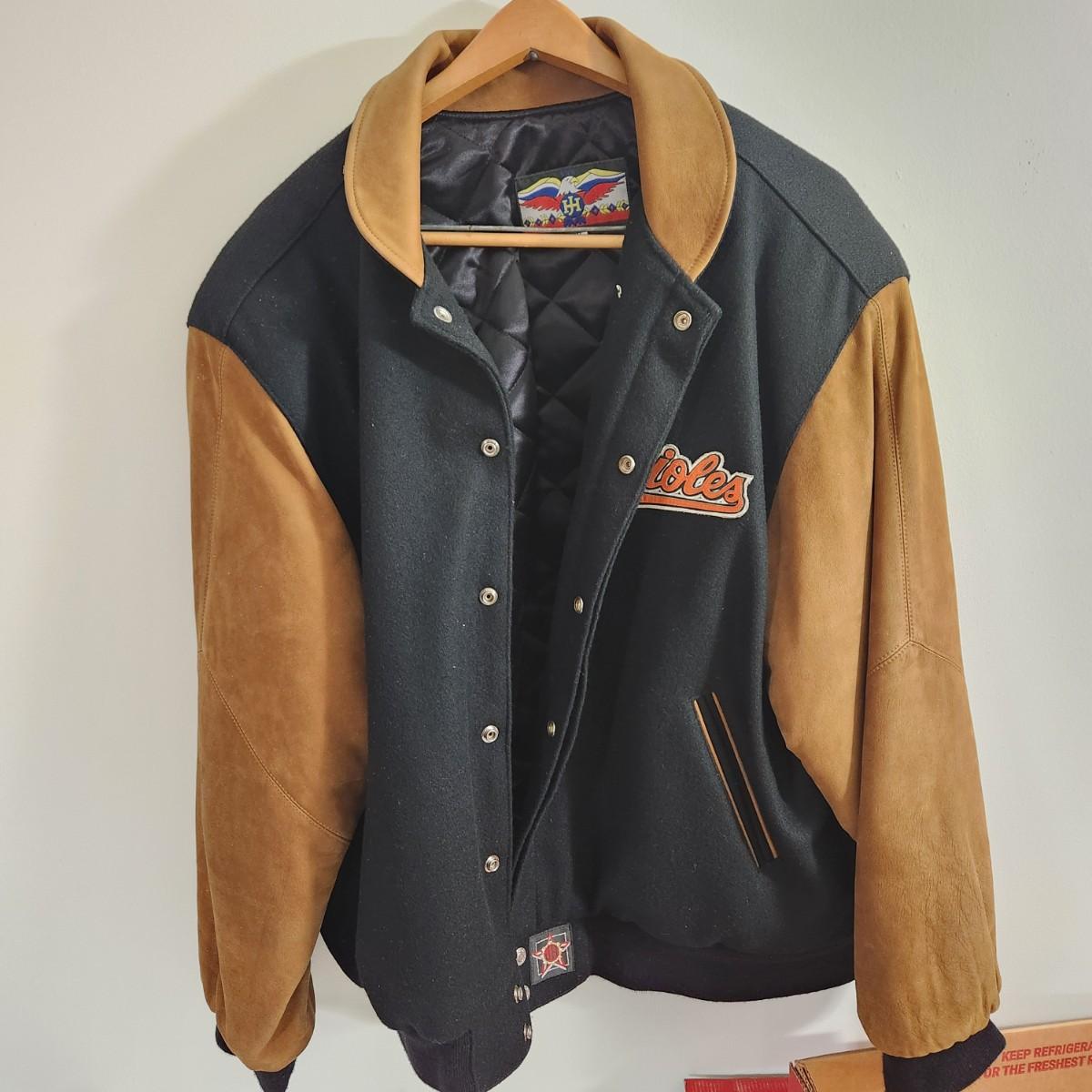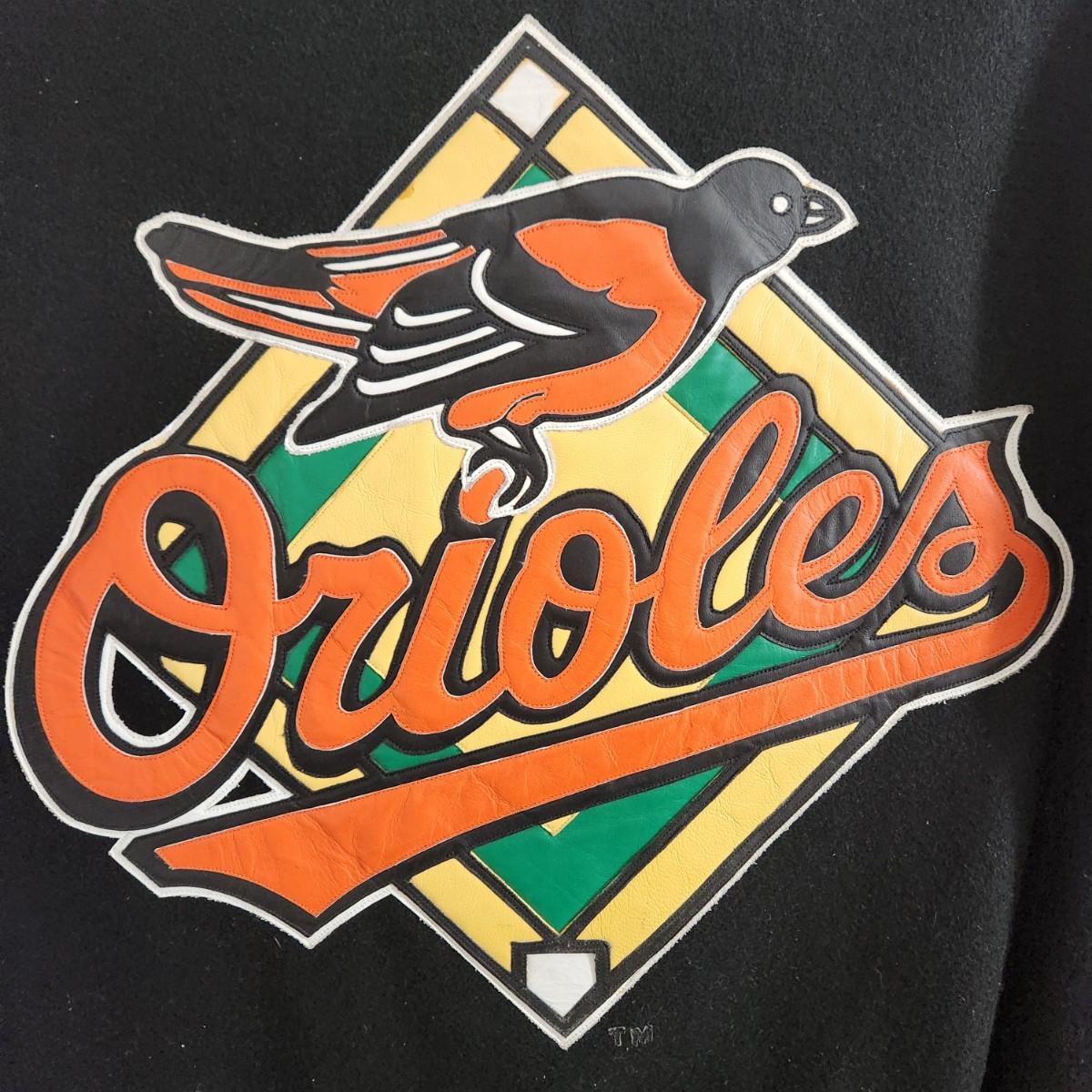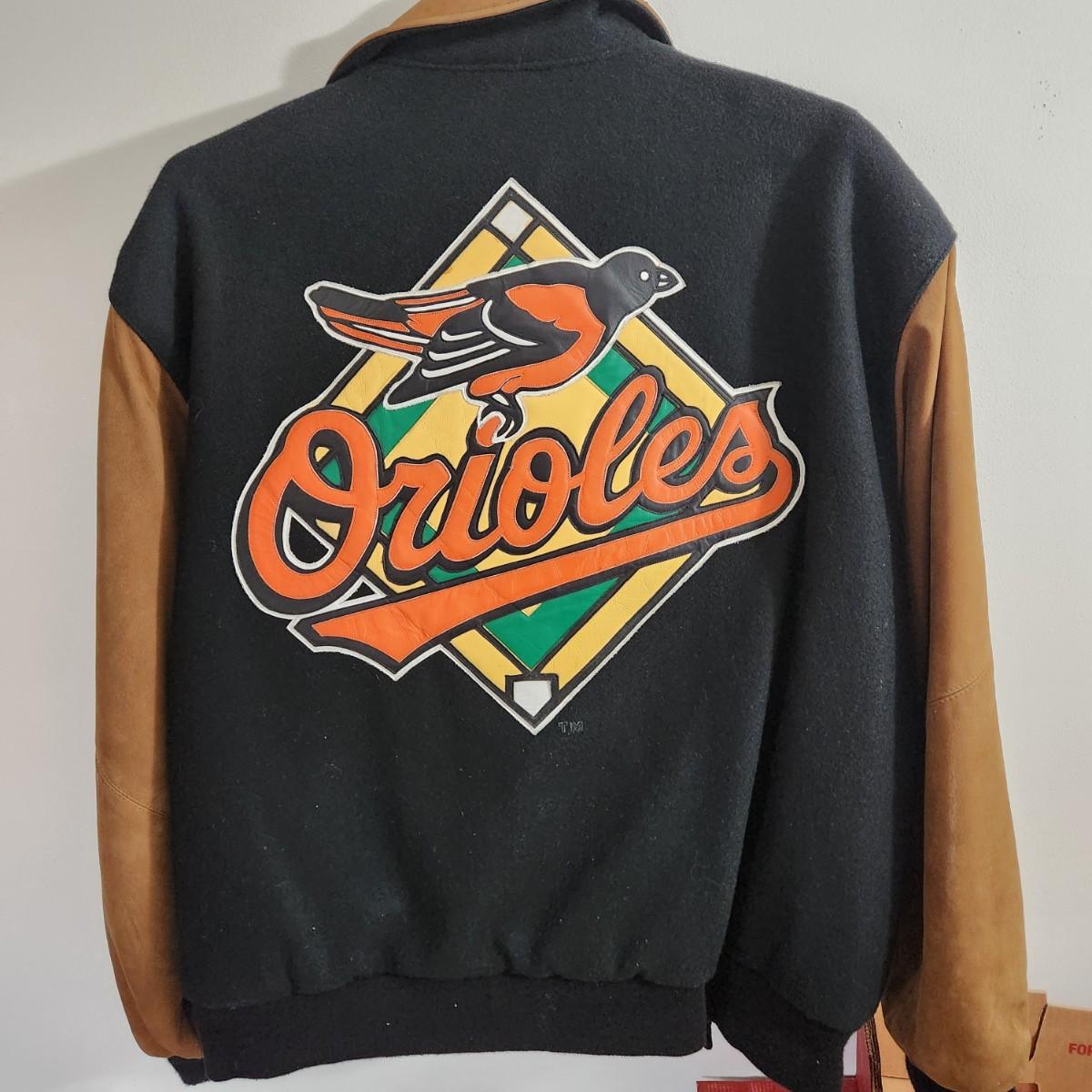 Vintage J.H. Design Baltimore Orioles Bomber Jacket 100% Cotton w Leather Logo Made in USA Size XL