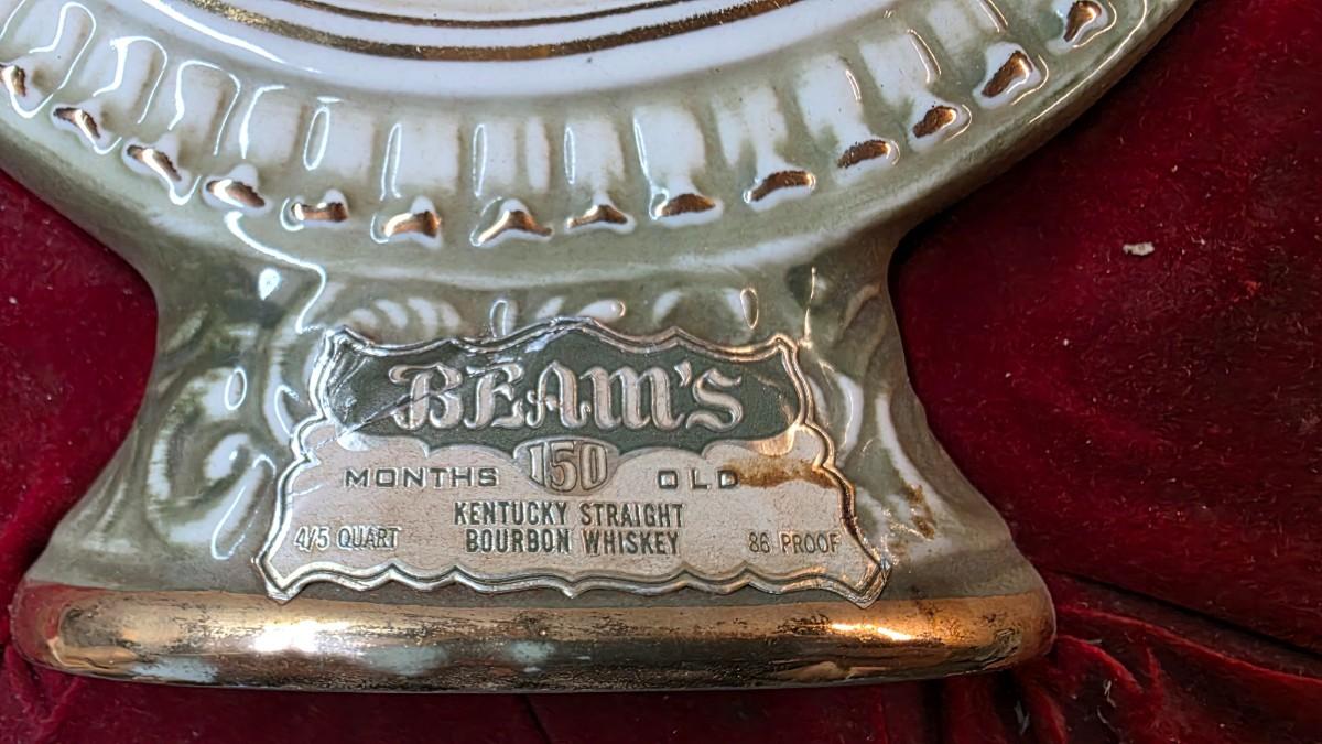 Jim Beam decanters from this era are collected primarily as decorative Americana rather than rare ceramics, with value driven by visual appeal, completeness, and condition of the bottle itself. This example stands out due to the strong condition of the decanter and the presence of the original case, despite its hinge separation.
