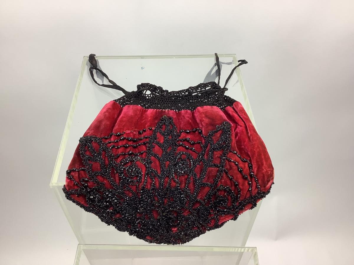 416 Antique Crushed-Velvet Purse with Beedwork