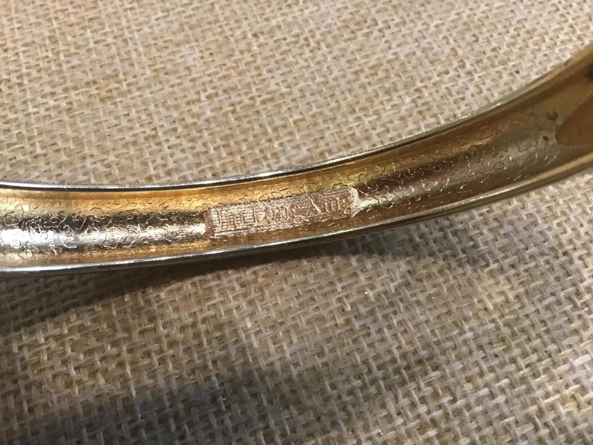Vintage Jiu Long Xing Cloisonne Hinged Bangle Bracelet. Signed Enamal