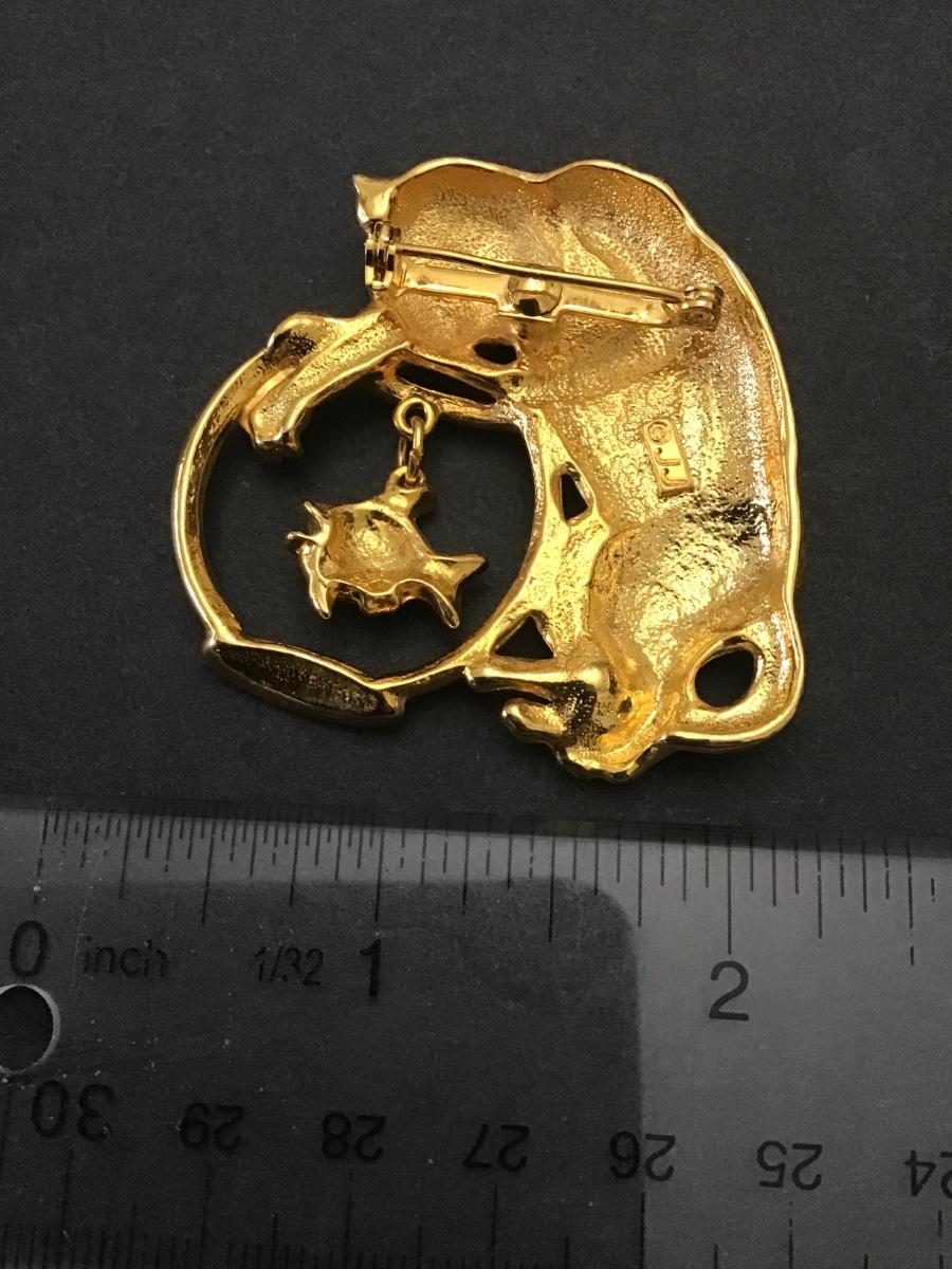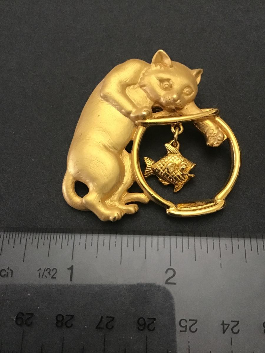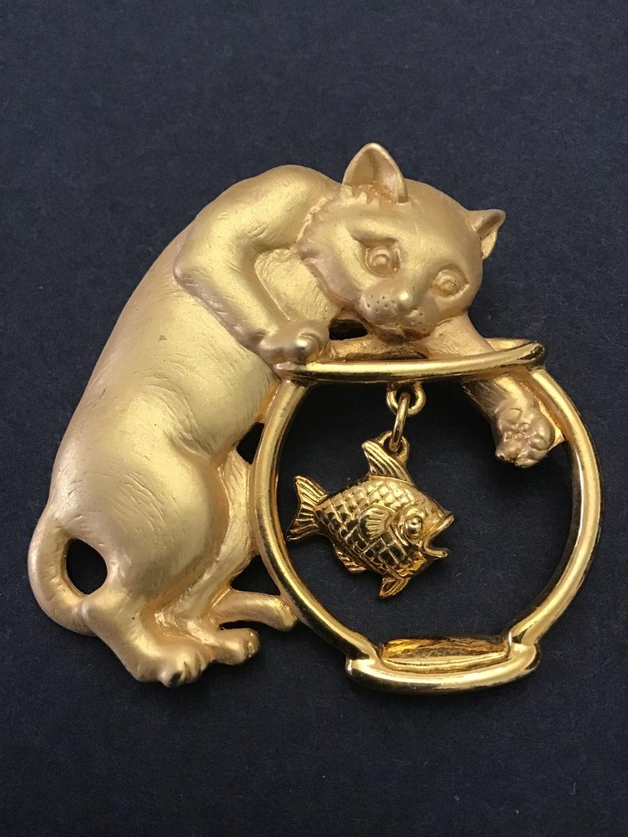 Vintage JJ gold tone cat fish bowl brooch excellent condition