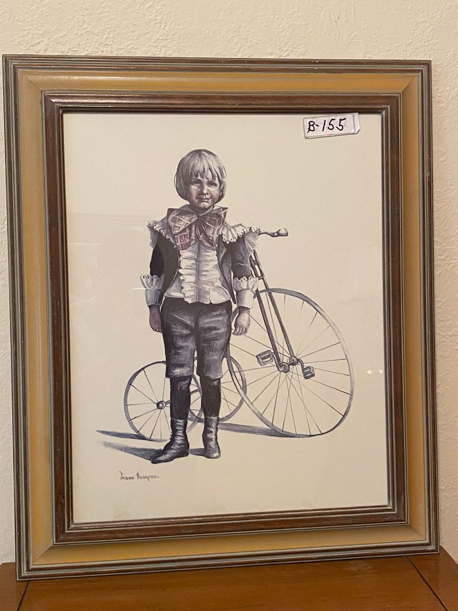 Vintage Joanne Thompson Framed Print "LIttle Boy and His Bicycle"