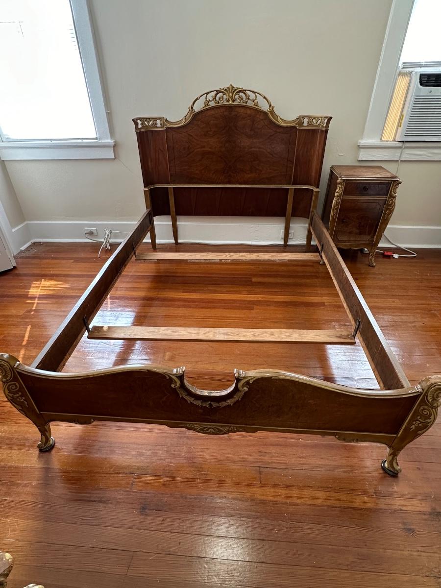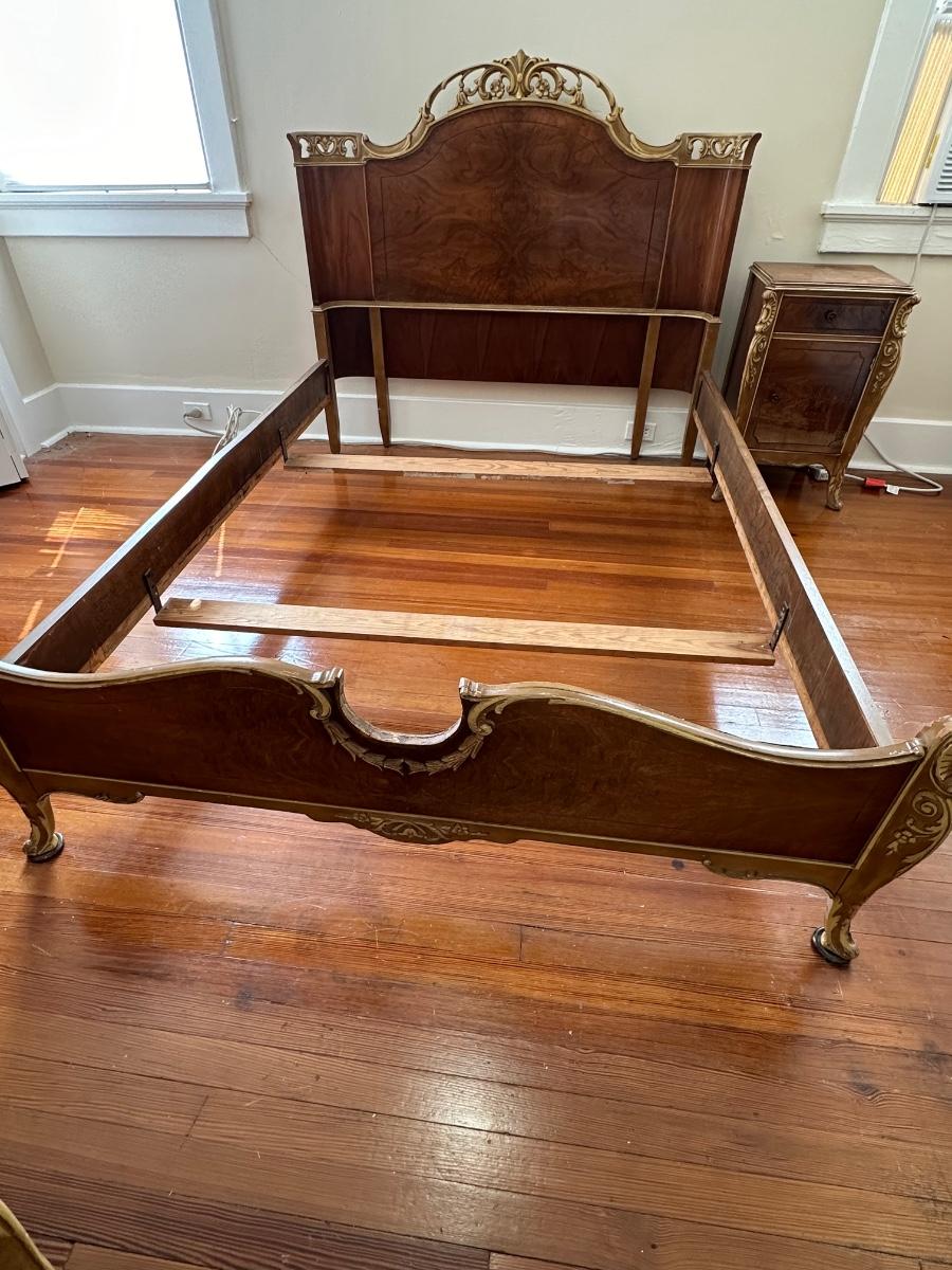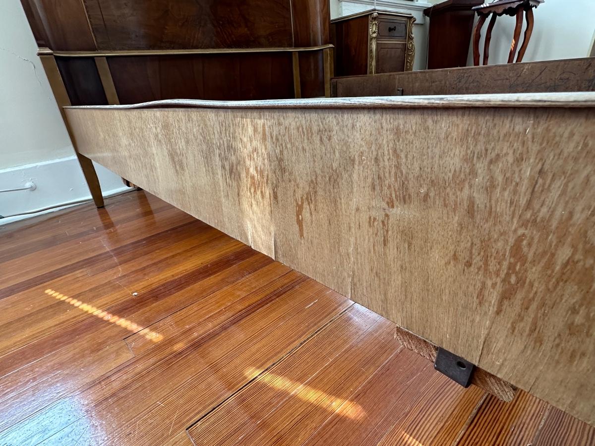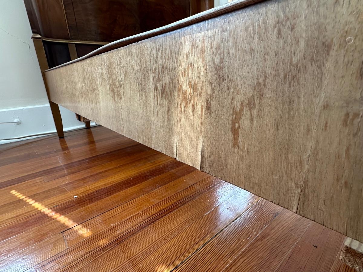 The bed has some veneer that’s peeling on the bottom of the headboard and a few other spots.