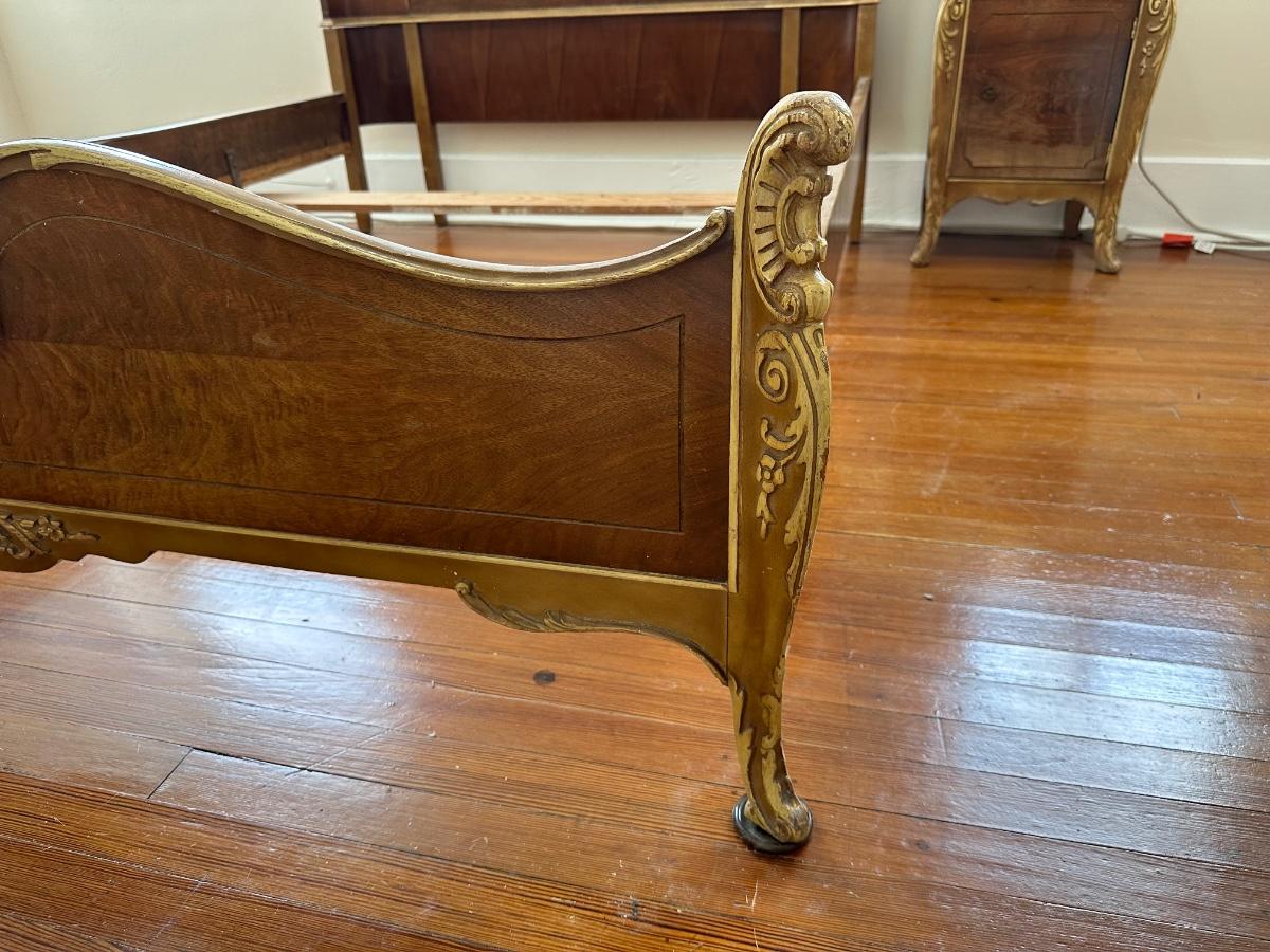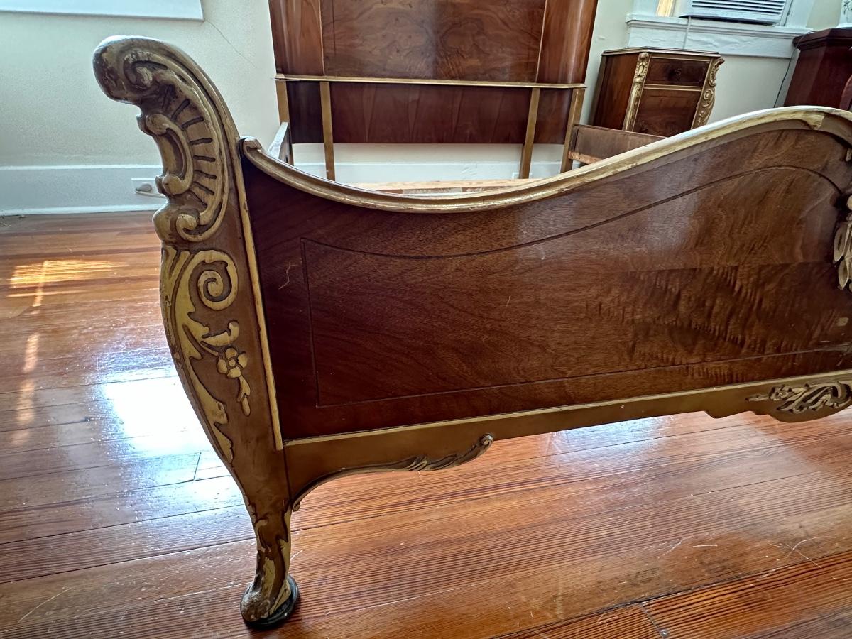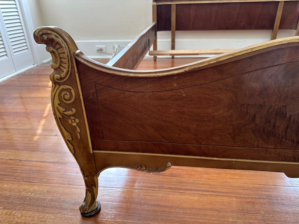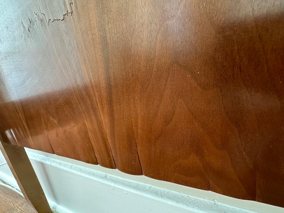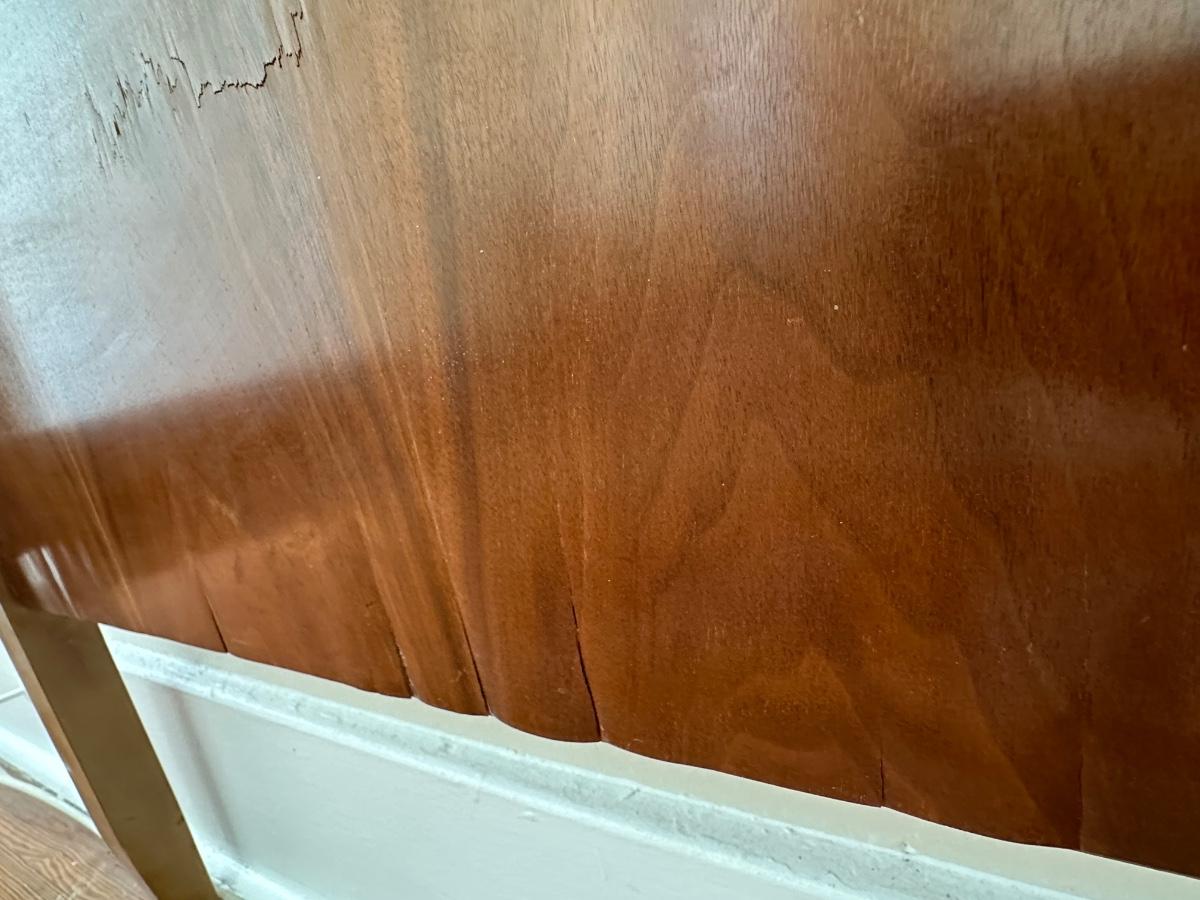 The bed has some veneer that’s peeling on the bottom of the headboard and a few other spots.