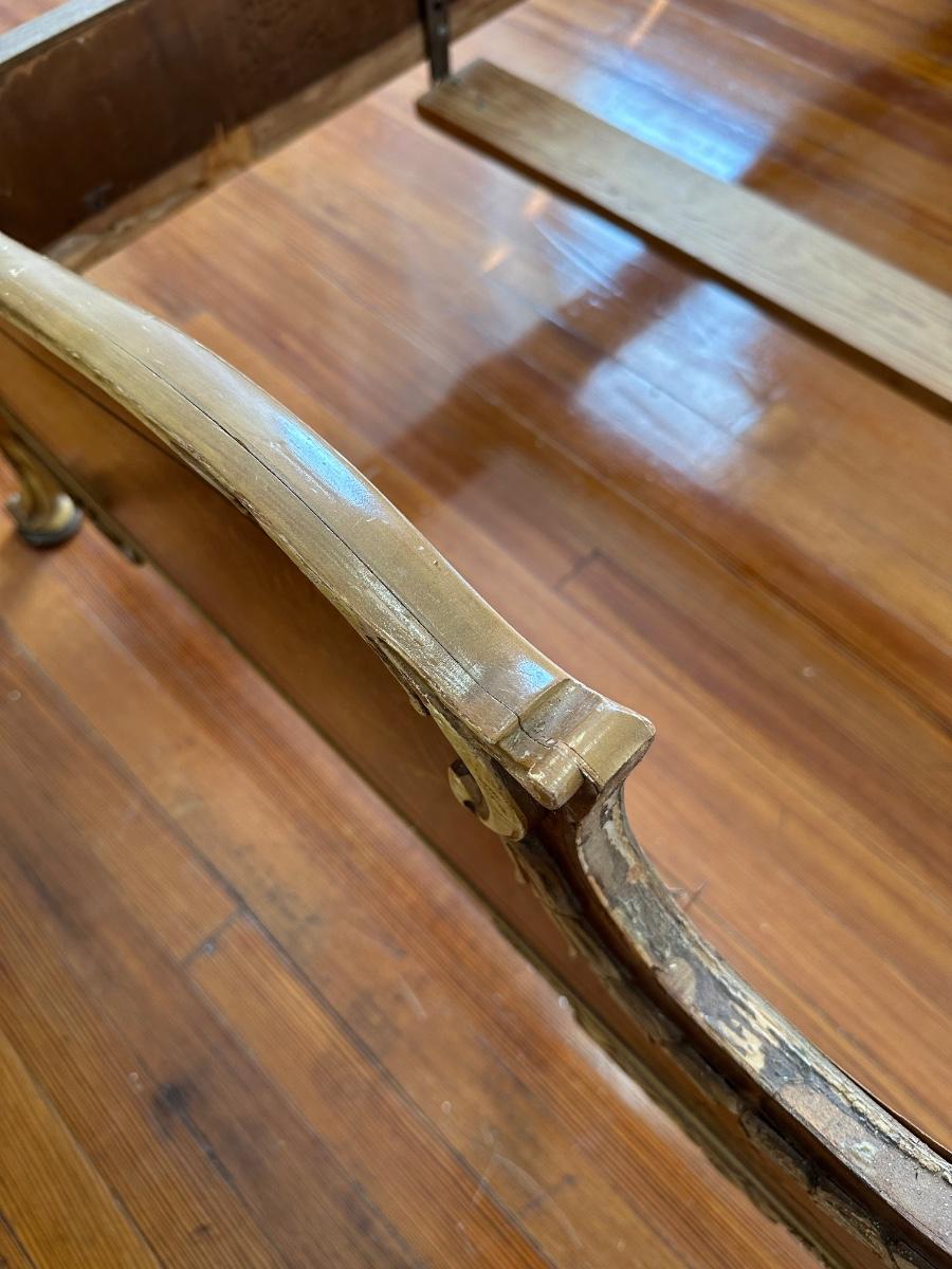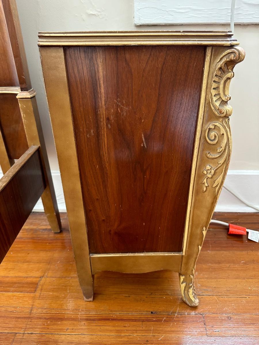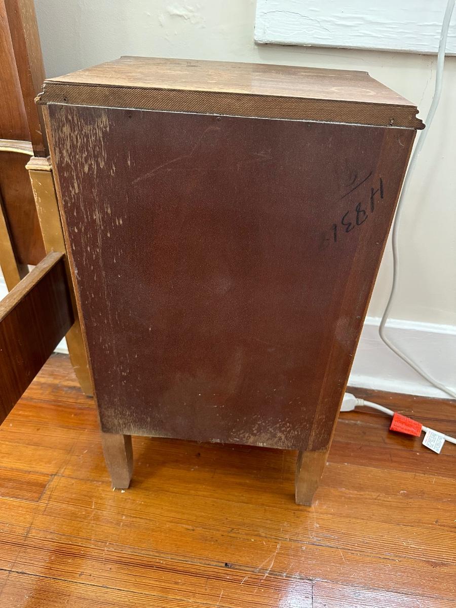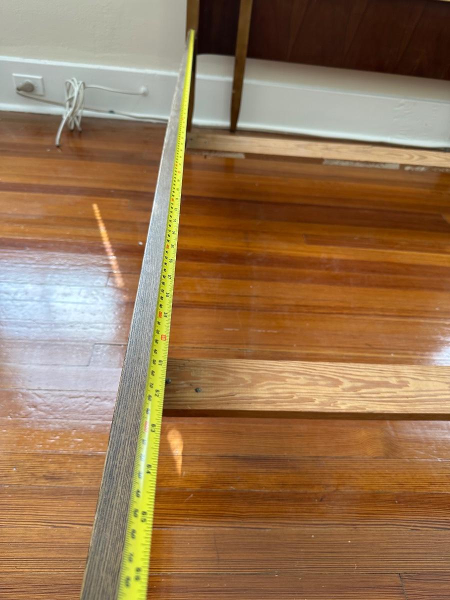 The bed has some veneer that’s peeling on the bottom of the headboard and a few other spots.