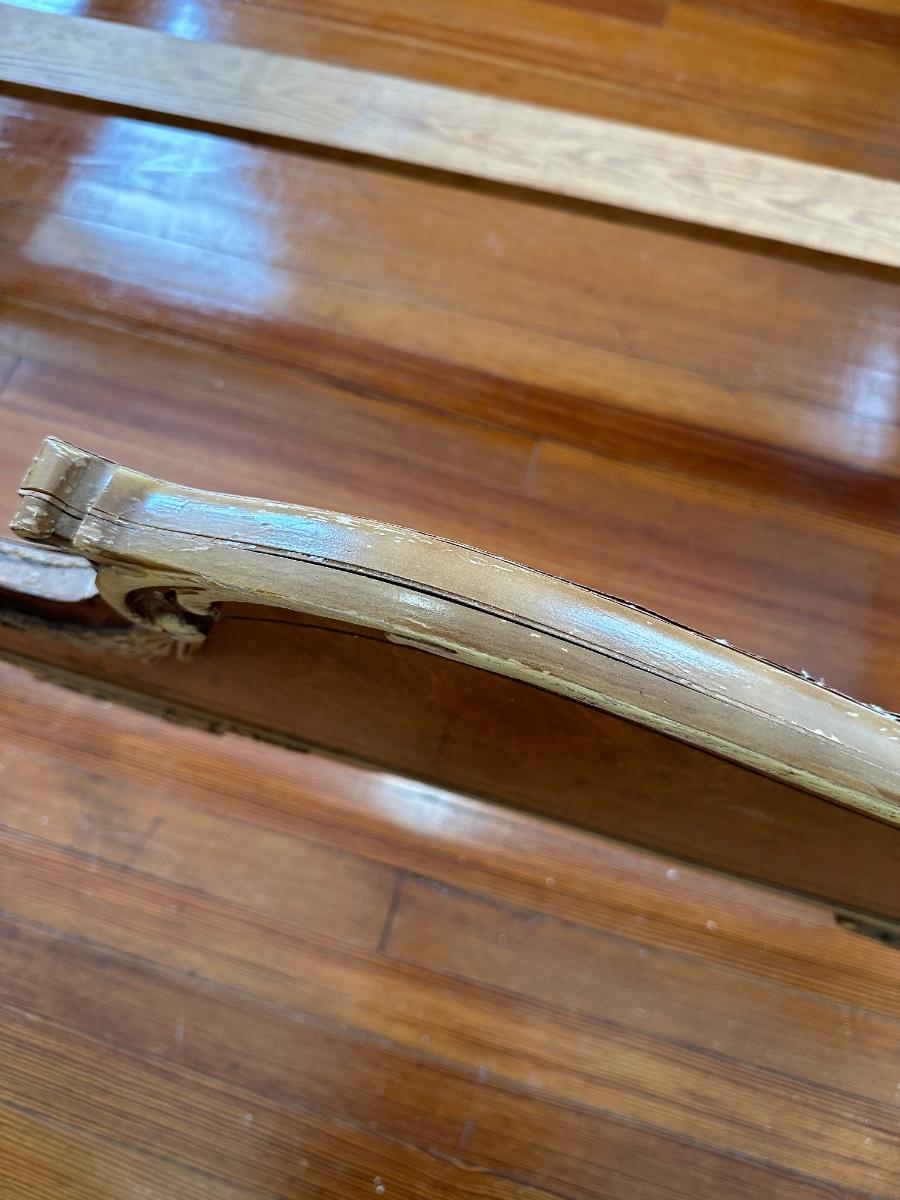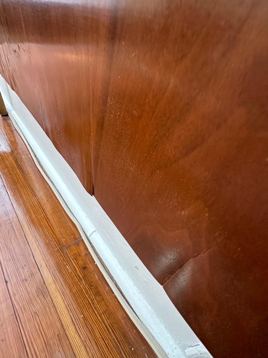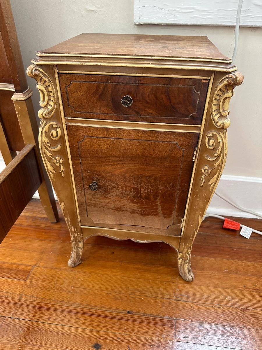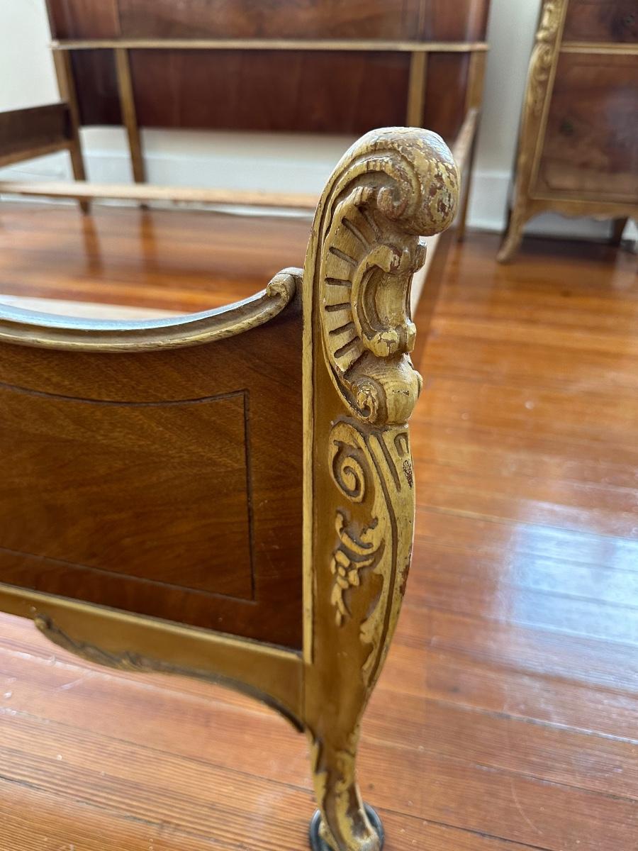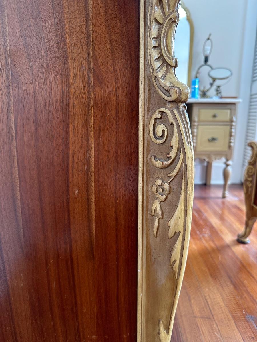The bed has some veneer that’s peeling on the bottom of the headboard and a few other spots.