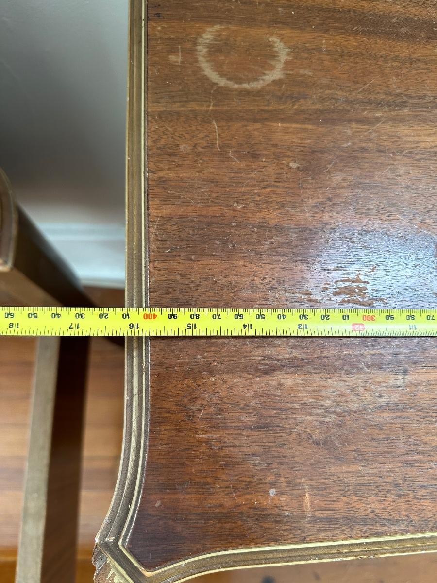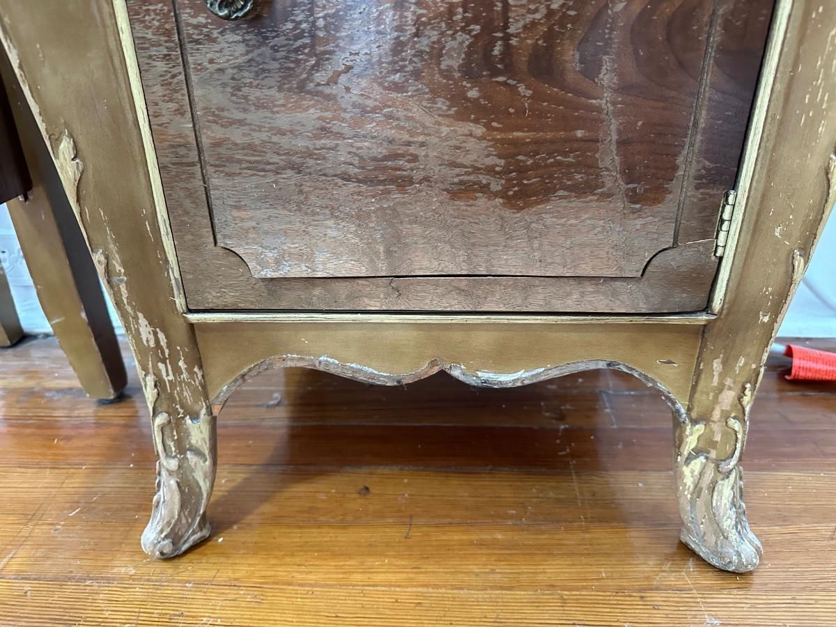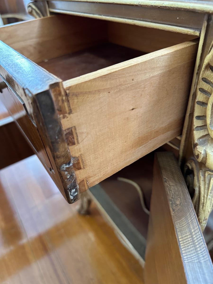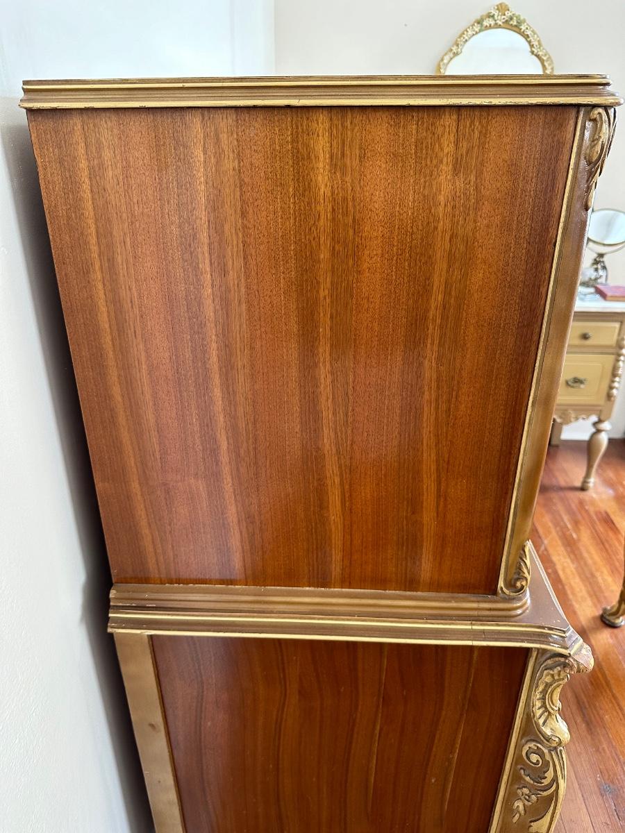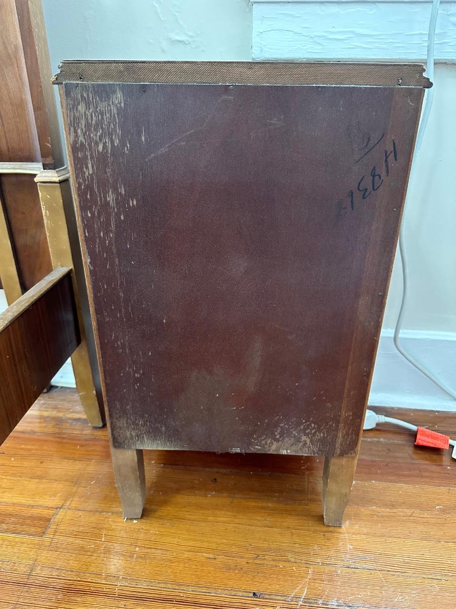 Dresser has some wear on the top and the bottom two drawers are slightly discolored.