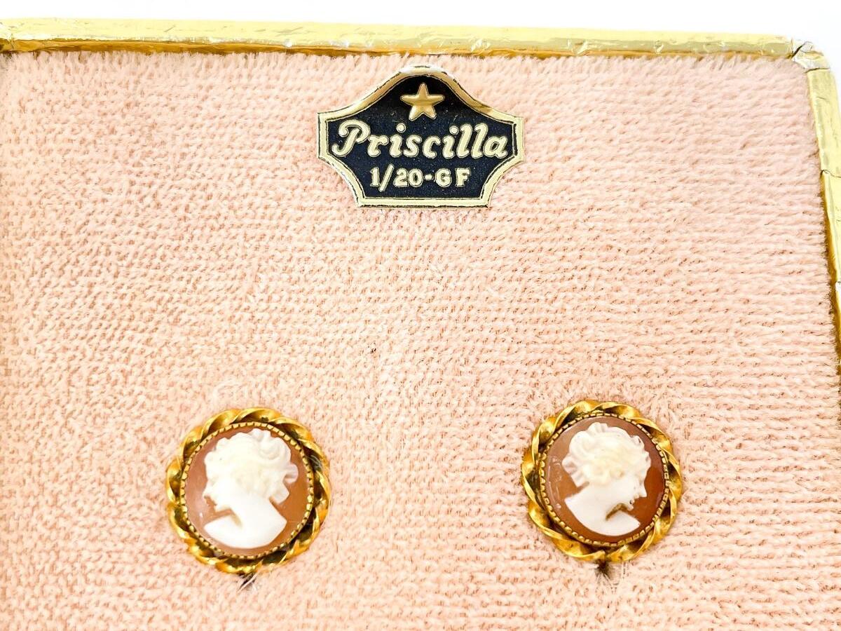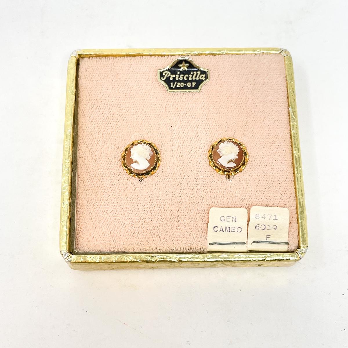 VINTAGE JOHN ALDEN PRISCILLA CAMEO SCREW-ON EARRINGS - 1/20 GOLD-FILL