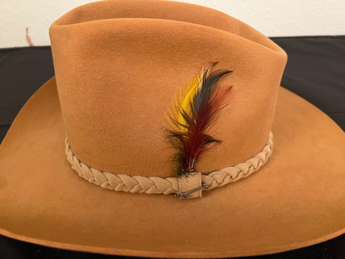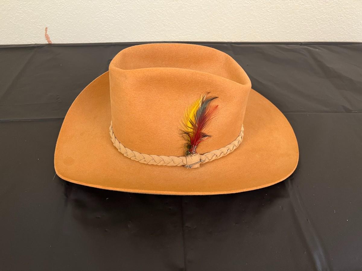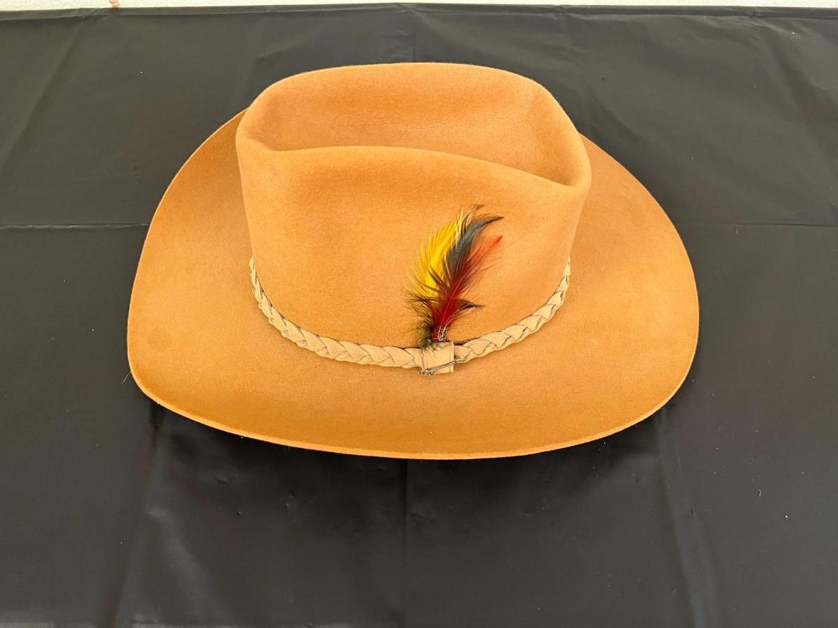 Vintage John B. Stetson 4X Beaver XXXX Stetson Tan Brown Hat with Feathers