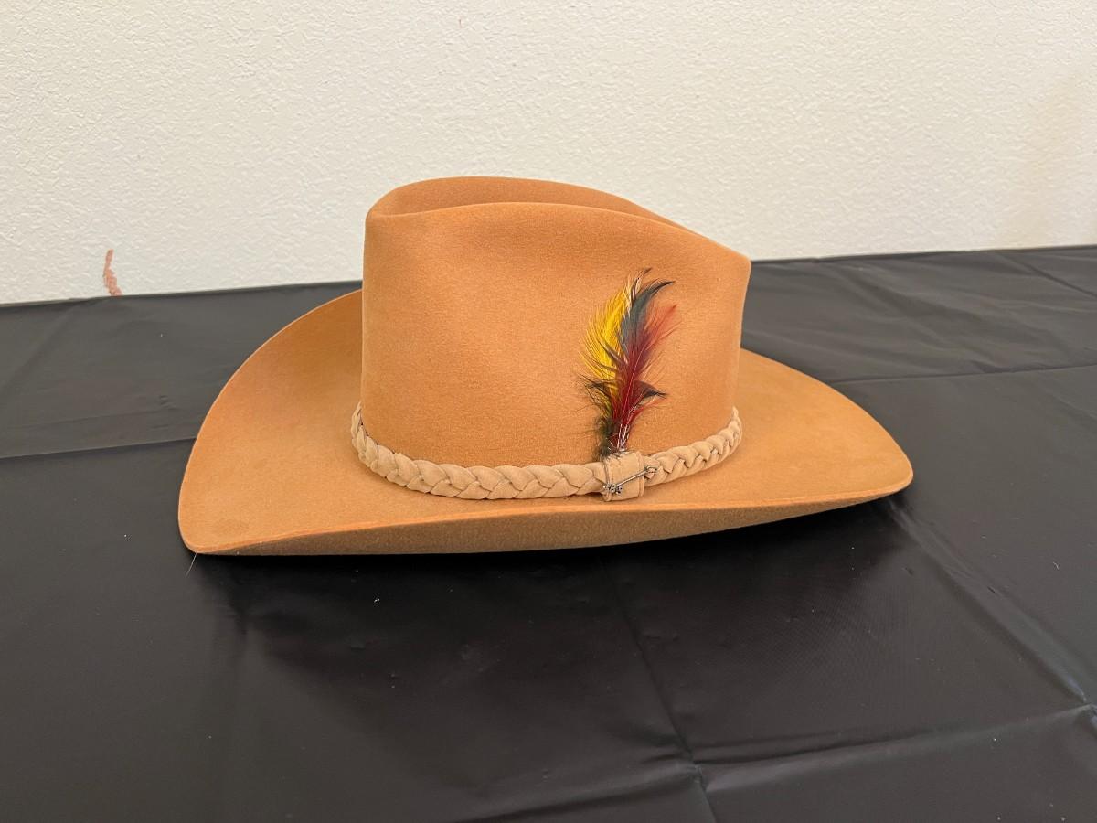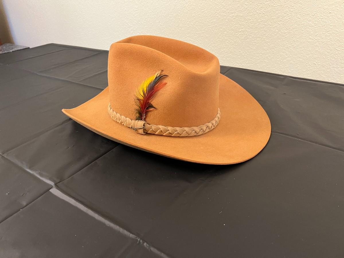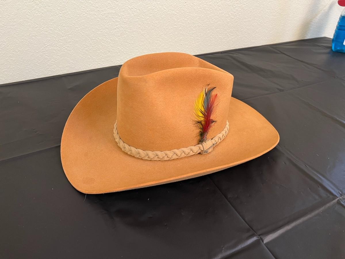 Vintage John B. Stetson 4X Beaver XXXX Stetson Tan Brown Hat with Feathers
