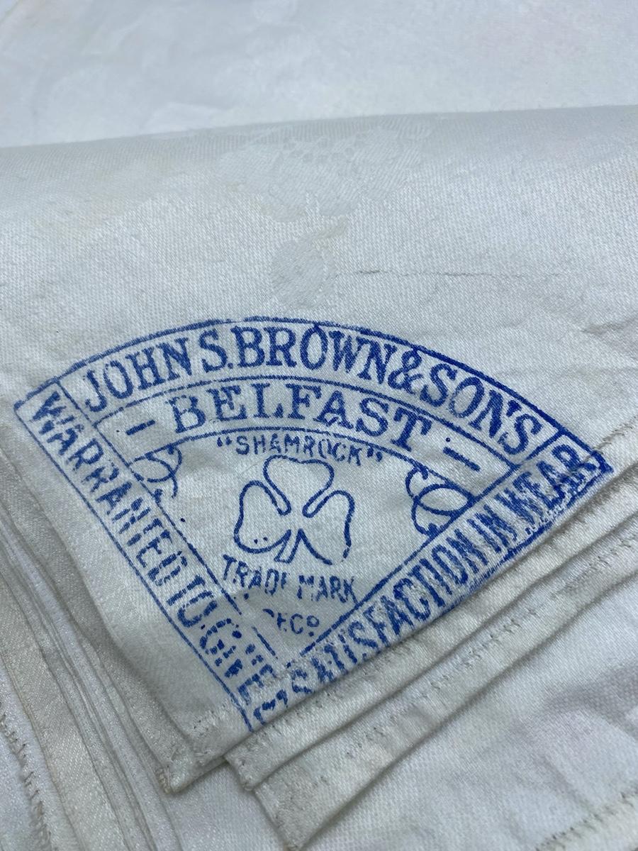 Vintage "John Brown & Sons Irish Damask Table Cloth With 12 Dinner Napkins.