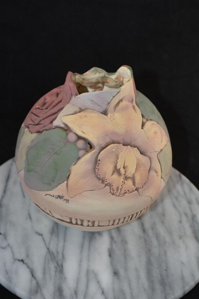 Vintage John Davis Sculpted Vase, Signed, ’98, 9”x7”x7”