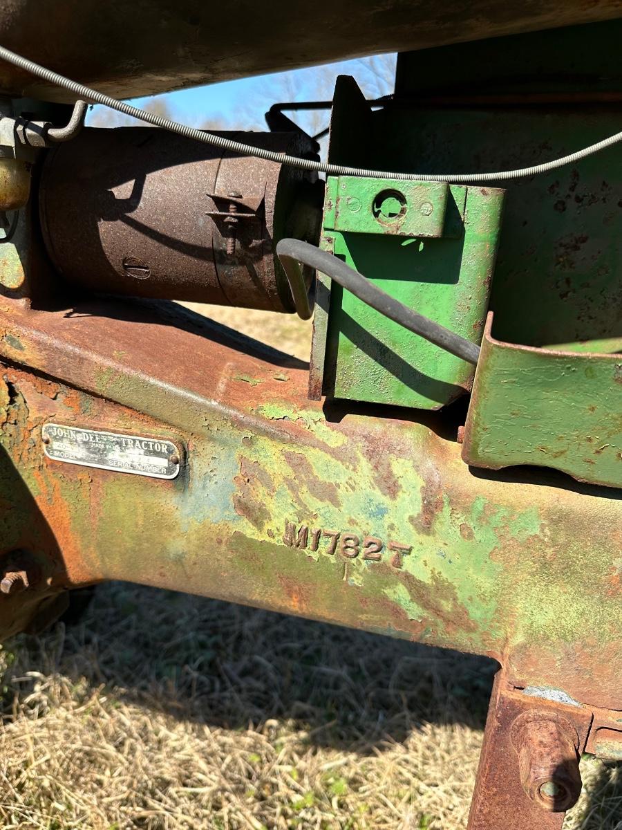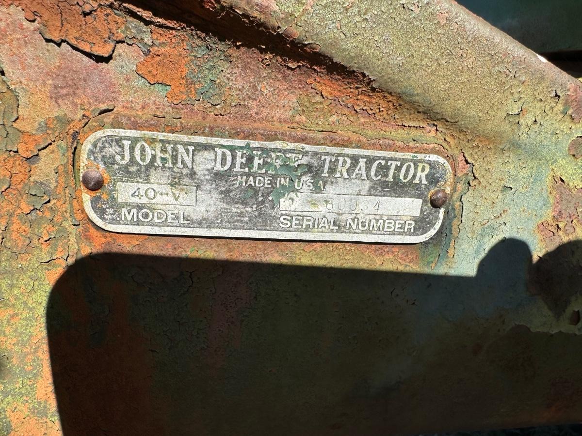 Original John Deere 40-V High-Crop tractor, made in the USA. Serial tag present and readable. The 40-V High-Crop model was designed for vegetable and row-crop farming.