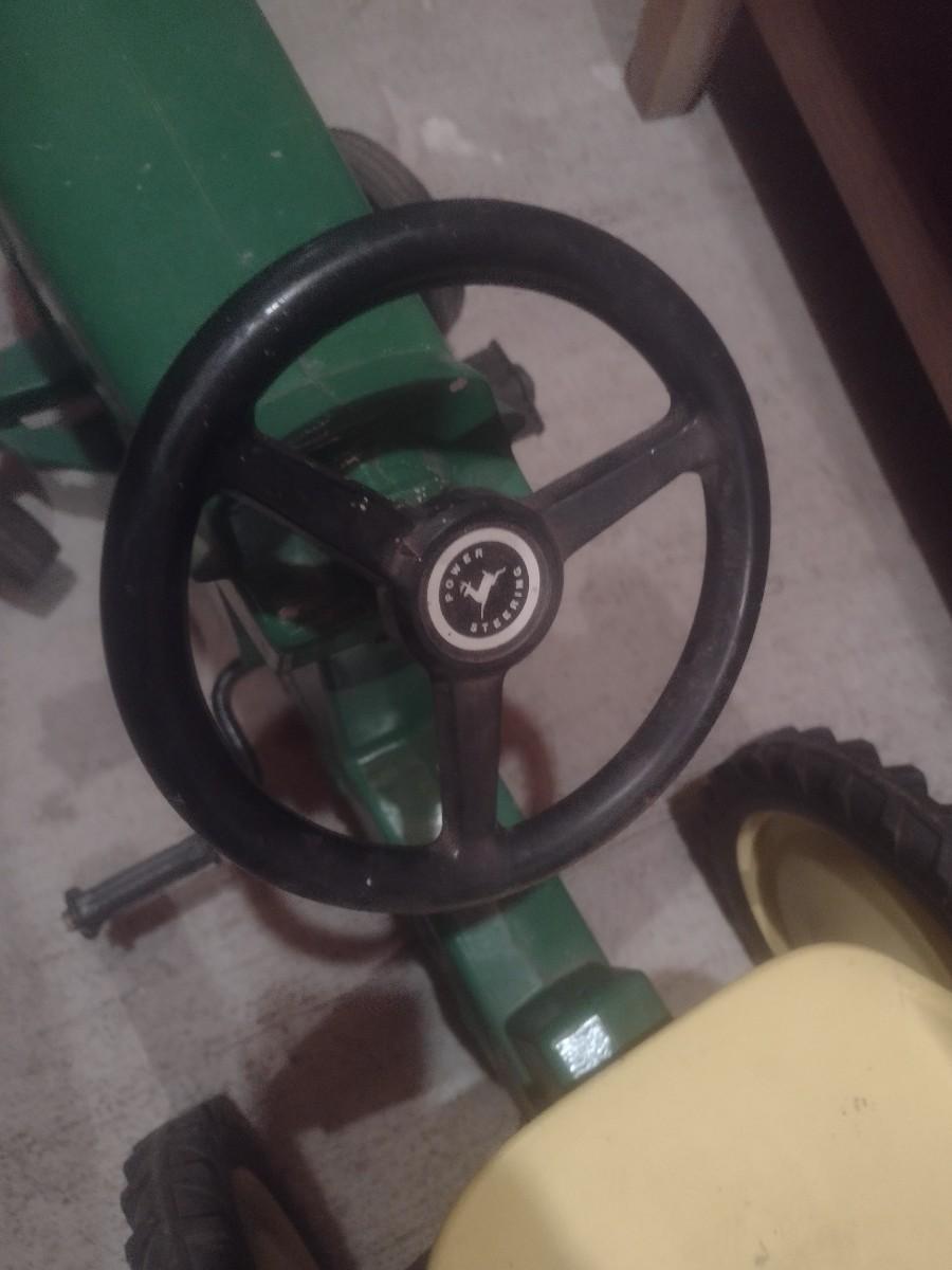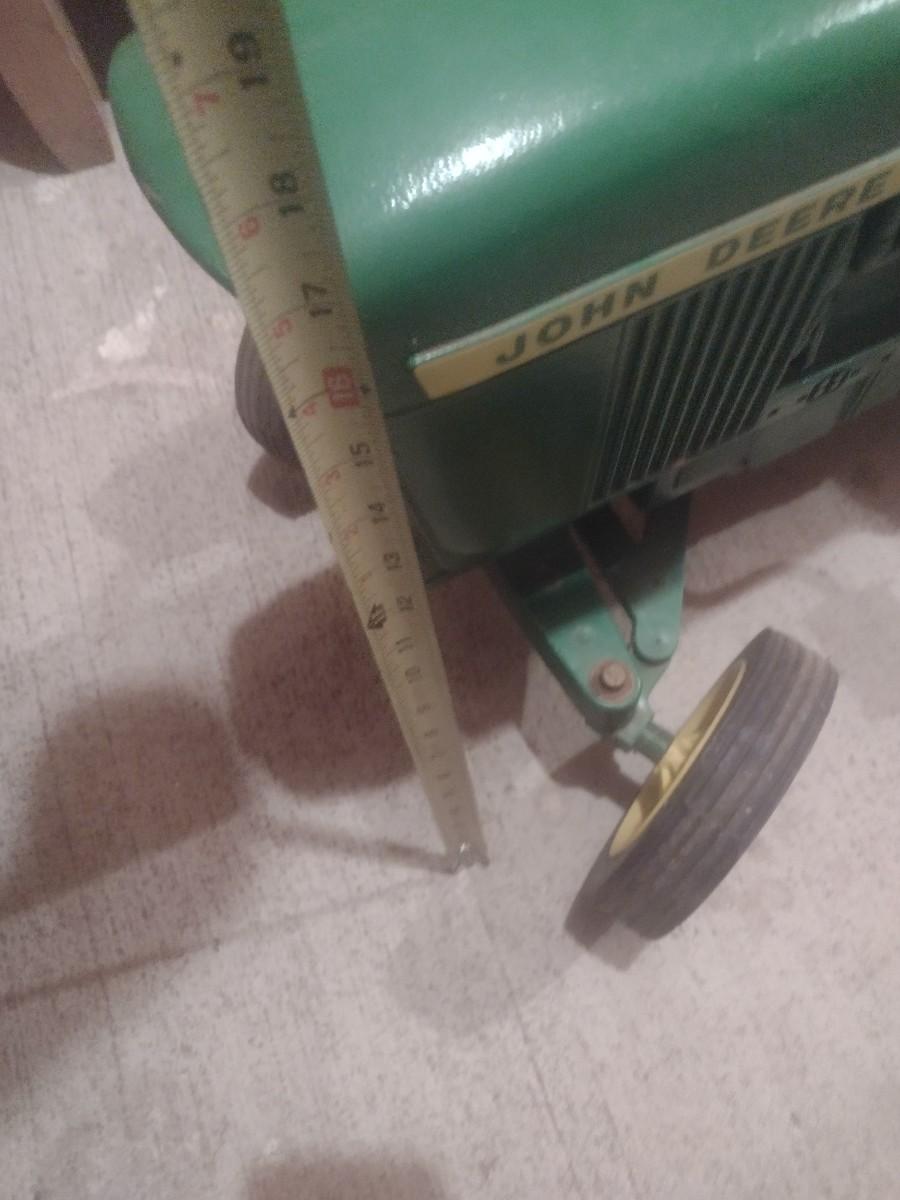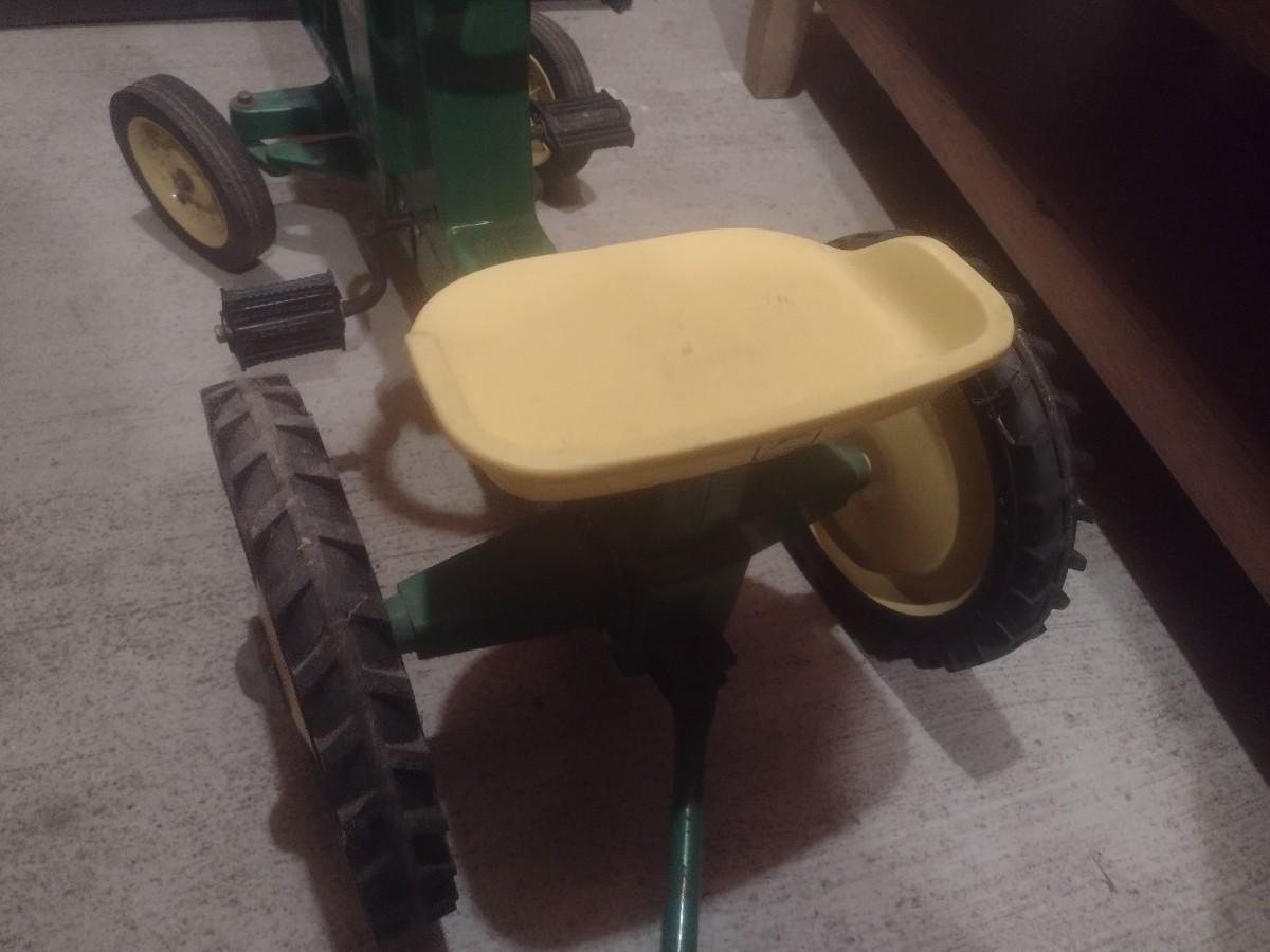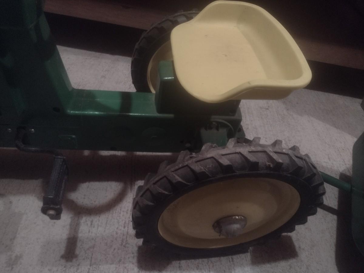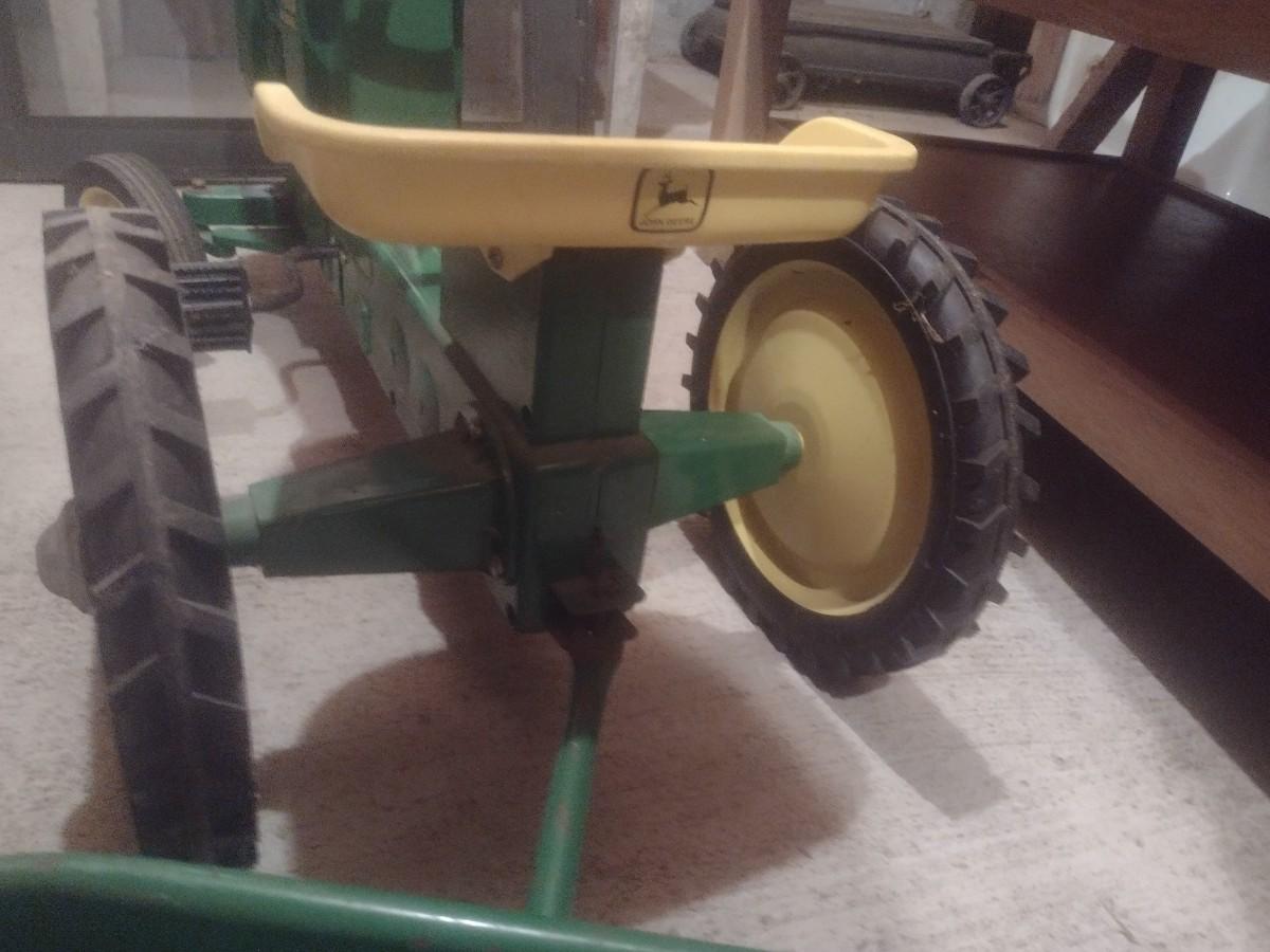 Vintage John Deere Cast Body 4020 Peddle Tractor with Metal Pan Single Axle Pull Wagon