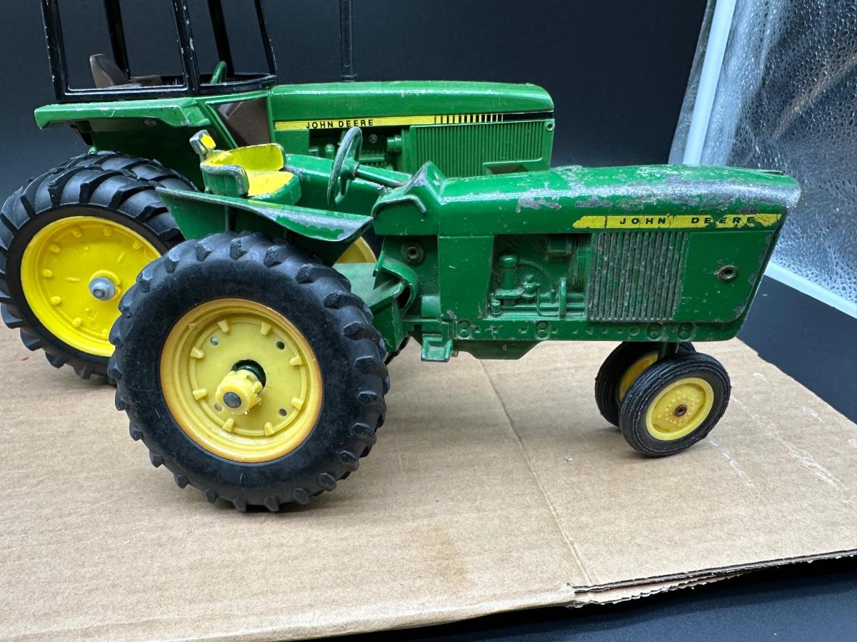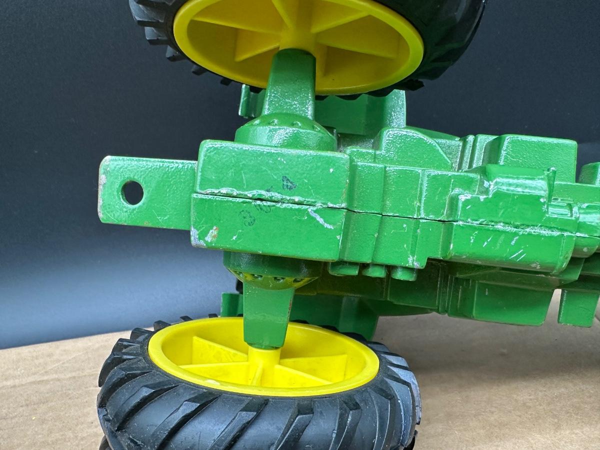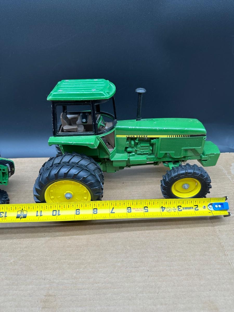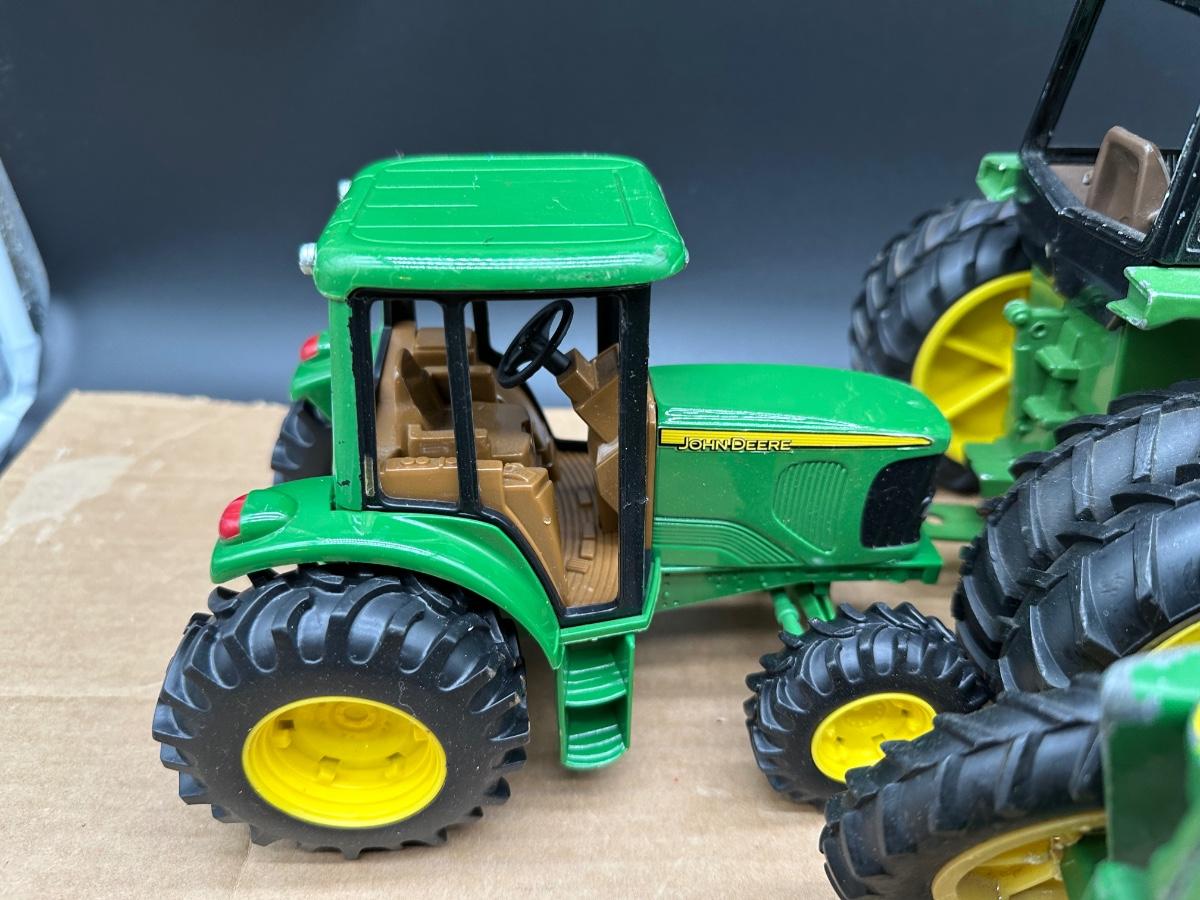 Condition ranges from good to play-worn with paint loss, scuffs, and wear consistent with age and use. Tires are present and roll; no boxes included. Great display pieces or additions to a farm toy or John Deere collection.